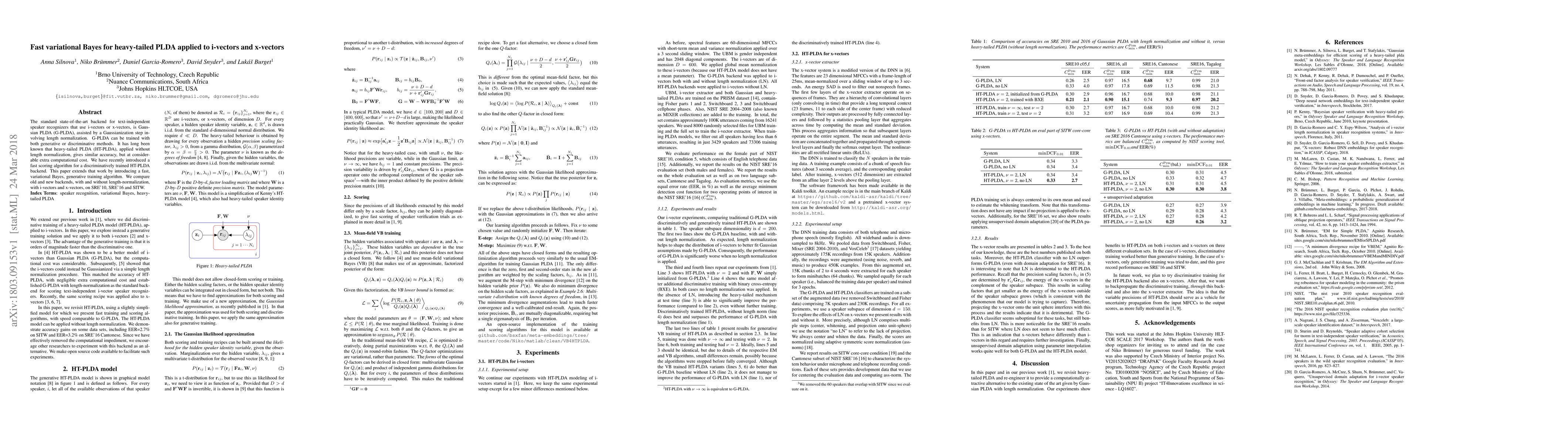 The standard state-of-the-art backend for text-independent speaker recognizers that use i-vectors or x-vectors, is Gaussian PLDA (G-PLDA), assisted by a Gaussianization step involving length normalization. G-PLDA can be trained with both generative or discriminative methods. It has long been known that heavy-tailed PLDA (HT-PLDA), applied without length normalization, gives similar accuracy, but at considerable extra computational cost. We have recently introduced a fast scoring algorithm for a discriminatively trained HT-PLDA backend. This paper extends that work by introducing a fast, variational Bayes, generative training algorithm. We compare old and new backends, with and without length-normalization, with i-vectors and x-vectors, on SRE'10, SRE'16 and SITW.