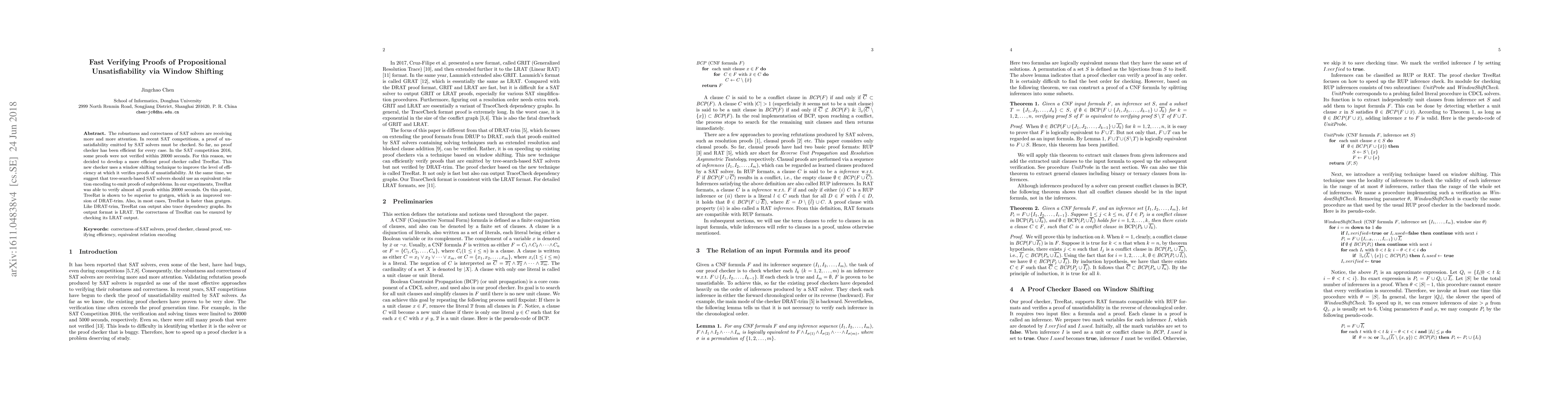 The paper introduces TreeRat, an efficient proof checker for SAT solvers that uses window shifting to verify proofs of unsatisfiability faster than existing methods. TreeRat outperformed gratgen in verification speed and was able to verify almost all proofs within 20000 seconds.