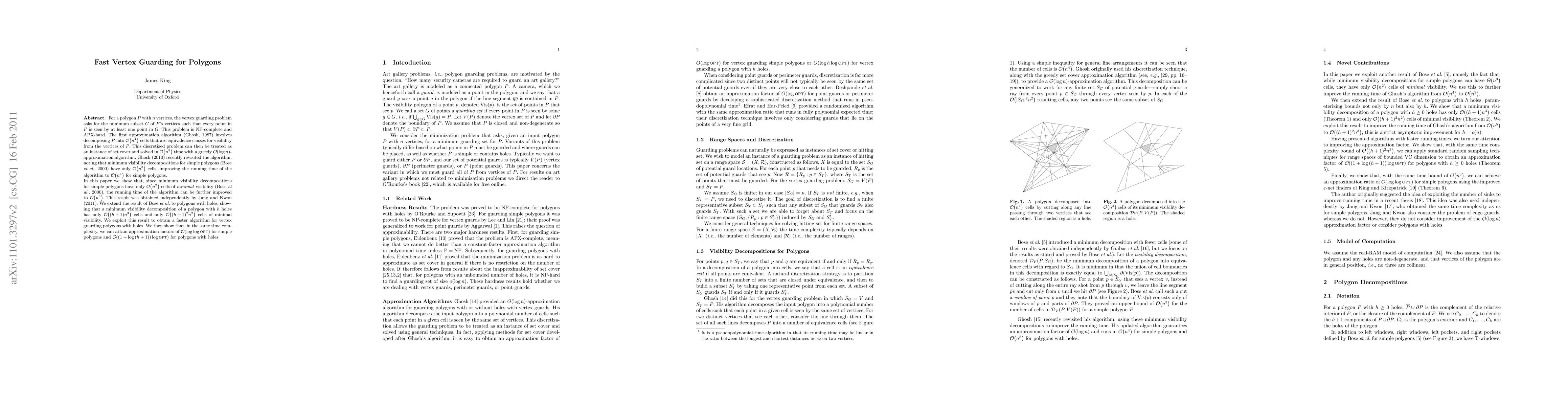 For a polygon P with n vertices, the vertex guarding problem asks for the minimum subset G of P's vertices such that every point in P is seen by at least one point in G. This problem is NP-complete and APX-hard. The first approximation algorithm (Ghosh, 1987) involves decomposing P into O(n^4) cells that are equivalence classes for visibility from the vertices of P. This discretized problem can then be treated as an instance of set cover and solved in O(n^5) time with a greedy O(log n)-approximation algorithm. Ghosh (2010) recently revisited the algorithm, noting that minimum visibility decompositions for simple polygons (Bose et al., 2000) have only O(n^3) cells, improving the running time of the algorithm to O(n^4) for simple polygons. In this paper we show that, since minimum visibility decompositions for simple polygons have only O(n^2) cells of minimal visibility (Bose et al., 2000), the running time of the algorithm can be further improved to O(n^3). This result was obtained independently by Jang and Kwon (2011). We extend the result of Bose et al. to polygons with holes, showing that a minimum visibility decomposition of a polygon with h holes has only O((h+1)n^3) cells and only O((h+1)^2 n^2) cells of minimal visibility. We exploit this result to obtain a faster algorithm for vertex guarding polygons with holes. We then show that, in the same time complexity, we can attain approximation factors of O(log log(opt)) for simple polygons and O((1+\log((h+1))) log(opt)) for polygons with holes.