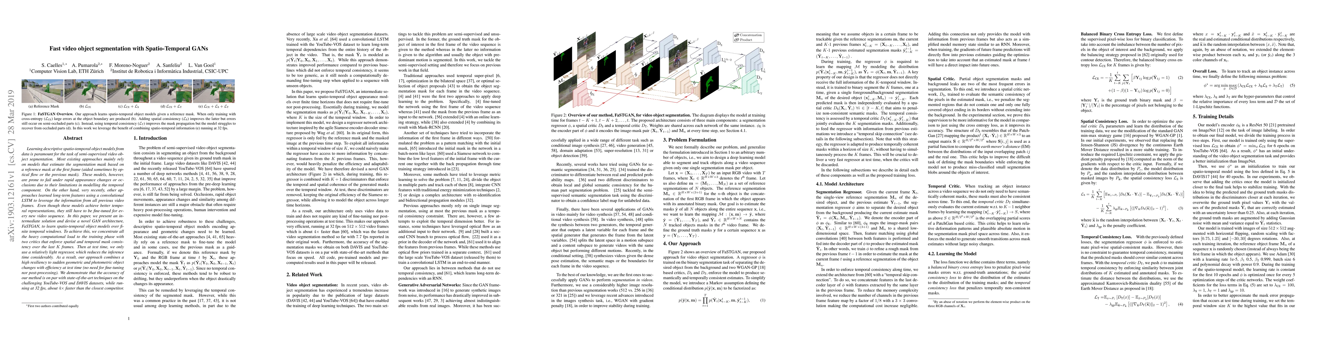 This paper introduces FaSTGAN, a novel GAN architecture for fast video object segmentation that balances accuracy and efficiency by learning spatio-temporal object models over finite temporal windows.