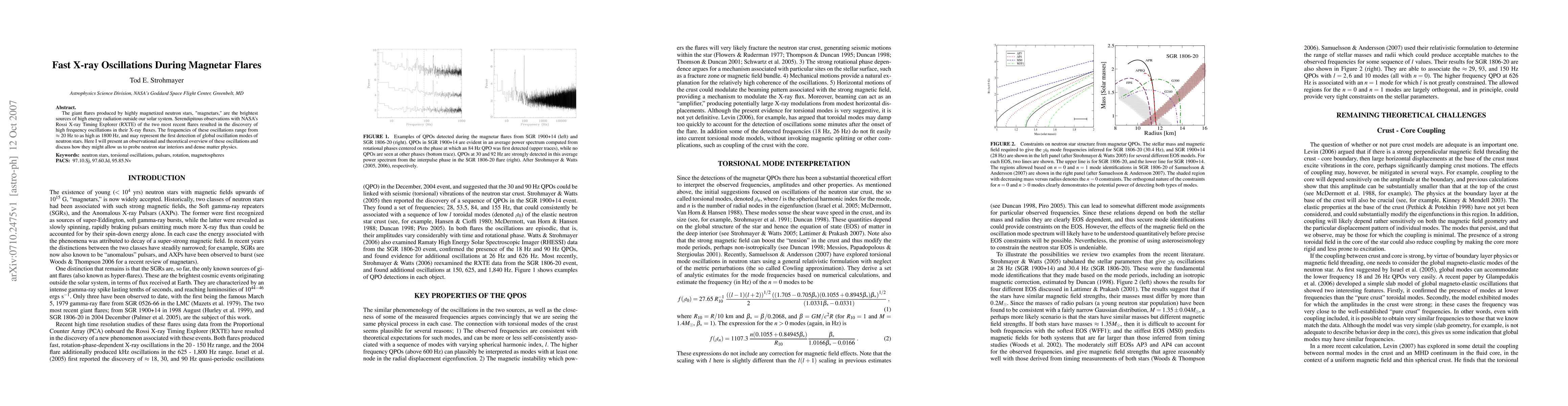 The giant flares produced by highly magnetized neutron stars, "magnetars," are the brightest sources of high energy radiation outside our solar system. Serendipitous observations with NASA's Rossi X-ray Timing Explorer (RXTE) of the two most recent flares resulted in the discovery of high frequency oscillations in their X-ray fluxes. The frequencies of these oscillations range from about 20 Hz to as high as 1800 Hz, and may represent the first detection of global oscillation modes of neutron stars. Here I will present an observational and theoretical overview of these oscillations and discuss how they might allow us to probe neutron star interiors and dense matter physics.