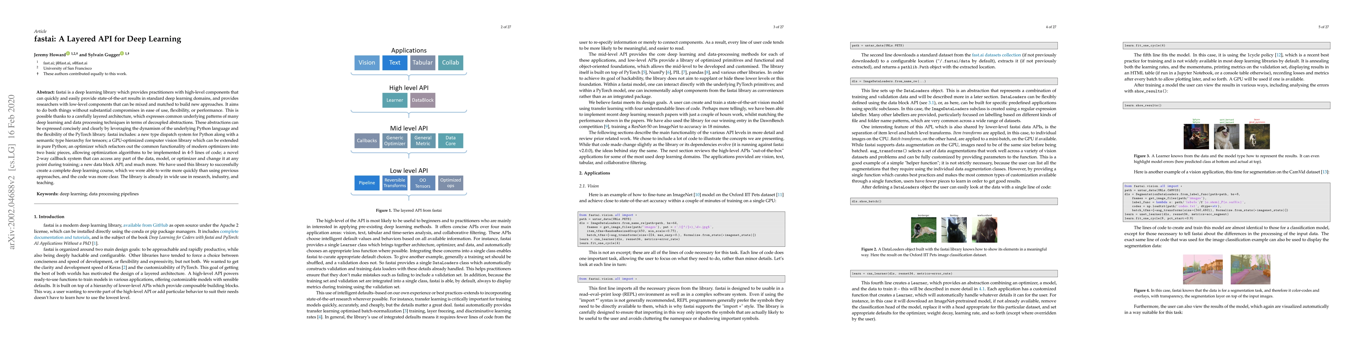 fastai is a deep learning library providing high-level components for state-of-the-art results and low-level components for custom approaches, with a layered architecture that enables flexibility and performance without compromising ease of use.