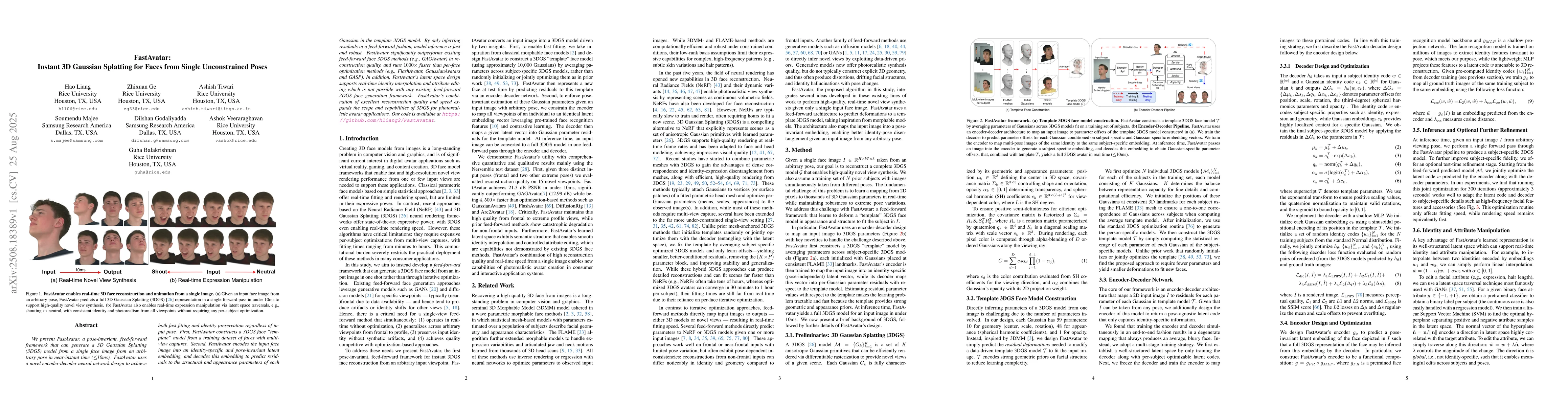 We present FastAvatar, a pose-invariant, feed-forward framework that can generate a 3D Gaussian Splatting (3DGS) model from a single face image from an arbitrary pose in near-instant time (<10ms). FastAvatar uses a novel encoder-decoder neural network design to achieve both fast fitting and identity preservation regardless of input pose. First, FastAvatar constructs a 3DGS face ``template'' model from a training dataset of faces with multi-view captures. Second, FastAvatar encodes the input face image into an identity-specific and pose-invariant latent embedding, and decodes this embedding to predict residuals to the structural and appearance parameters of each Gaussian in the template 3DGS model. By only inferring residuals in a feed-forward fashion, model inference is fast and robust. FastAvatar significantly outperforms existing feed-forward face 3DGS methods (e.g., GAGAvatar) in reconstruction quality, and runs 1000x faster than per-face optimization methods (e.g., FlashAvatar, GaussianAvatars and GASP). In addition, FastAvatar's novel latent space design supports real-time identity interpolation and attribute editing which is not possible with any existing feed-forward 3DGS face generation framework. FastAvatar's combination of excellent reconstruction quality and speed expands the scope of 3DGS for photorealistic avatar applications in consumer and interactive systems.