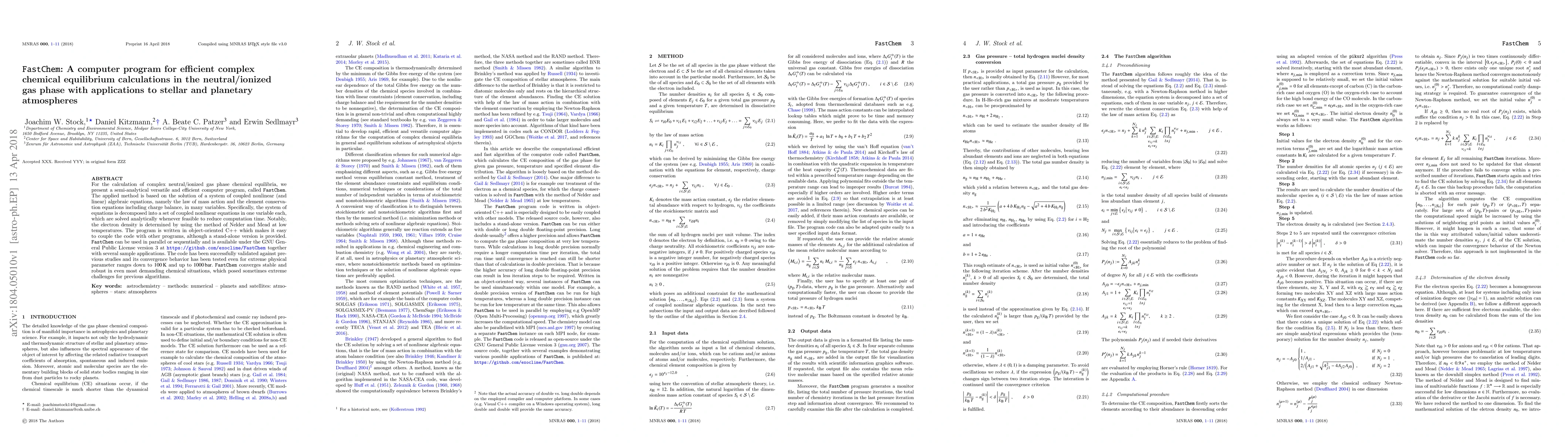 For the calculation of complex neutral/ionized gas phase chemical equilibria, we present a semi-analytical versatile and efficient computer program, called FastChem. The applied method is based on the solution of a system of coupled nonlinear (and linear) algebraic equations, namely the law of mass action and the element conservation equations including charge balance, in many variables. Specifically, the system of equations is decomposed into a set of coupled nonlinear equations in one variable each, which are solved analytically whenever feasible to reduce computation time. Notably, the electron density is determined by using the method of Nelder and Mead at low temperatures. The program is written in object-oriented C++ which makes it easy to couple the code with other programs, although a stand-alone version is provided. FastChem can be used in parallel or sequentially and is available under the GNU General Public License version 3 at https://github.com/exoclime/FastChem together with several sample applications. The code has been successfully validated against previous studies and its convergence behavior has been tested even for extreme physical parameter ranges down to 100 K and up to 1000 bar. FastChem converges stable and robust in even most demanding chemical situations, which posed sometimes extreme challenges for previous algorithms.