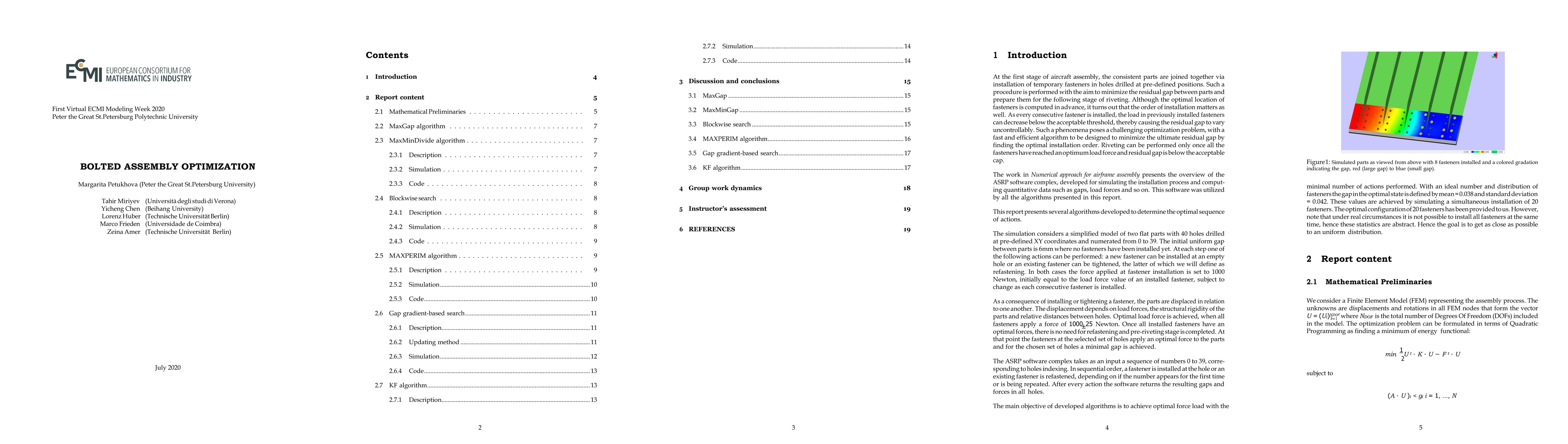 Within the framework of an airplane assembly process, in particular the process of fastener installation at drilled holes, the following two problems are studied in this work: quadratic programming optimization of final fastener positioning, and optimization of the fastener installation order. Several algorithms were suggested, modelled on MATLAB, tested and compared.