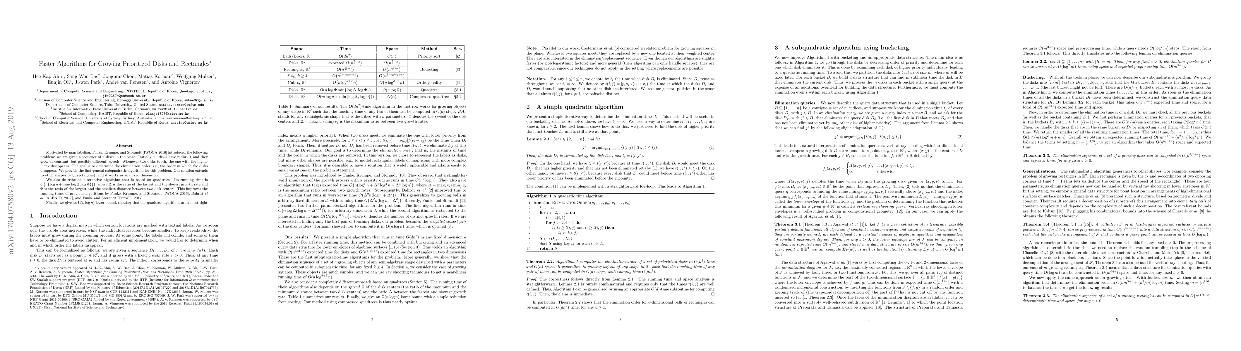 Motivated by map labeling, Funke, Krumpe, and Storandt [IWOCA 2016] introduced the following problem: we are given a sequence of $n$ disks in the plane. Initially, all disks have radius $0$, and they grow at constant, but possibly different, speeds. Whenever two disks touch, the one with the higher index disappears. The goal is to determine the elimination order, i.e., the order in which the disks disappear. We provide the first general subquadratic algorithm for this problem. Our solution extends to other shapes (e.g., rectangles), and it works in any fixed dimension. We also describe an alternative algorithm that is based on quadtrees. Its running time is $O\big(n \big(\log n + \min \{ \log \Delta, \log \Phi \}\big)\big)$, where $\Delta$ is the ratio of the fastest and the slowest growth rate and $\Phi$ is the ratio of the largest and the smallest distance between two disk centers. This improves the running times of previous algorithms by Funke, Krumpe, and Storandt [IWOCA 2016], Bahrdt et al. [ALENEX 2017], and Funke and Storandt [EuroCG 2017]. Finally, we give an $\Omega(n\log n)$ lower bound, showing that our quadtree algorithms are almost tight.