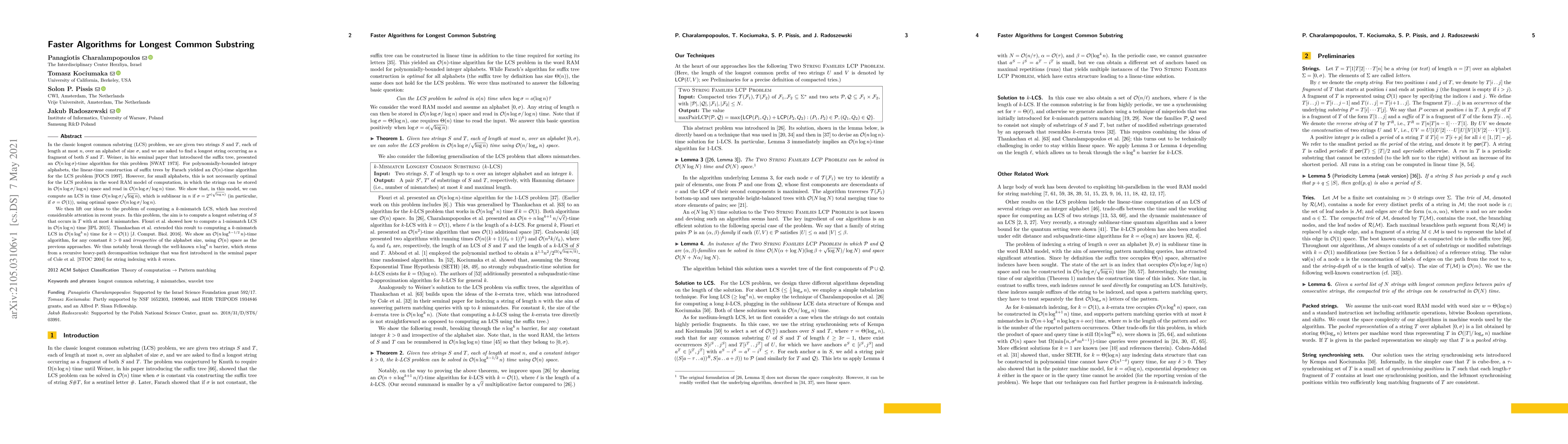 In the classic longest common substring (LCS) problem, we are given two strings $S$ and $T$, each of length at most $n$, over an alphabet of size $\sigma$, and we are asked to find a longest string occurring as a fragment of both $S$ and $T$. Weiner, in his seminal paper that introduced the suffix tree, presented an $\mathcal{O}(n \log \sigma)$-time algorithm for this problem [SWAT 1973]. For polynomially-bounded integer alphabets, the linear-time construction of suffix trees by Farach yielded an $\mathcal{O}(n)$-time algorithm for the LCS problem [FOCS 1997]. However, for small alphabets, this is not necessarily optimal for the LCS problem in the word RAM model of computation, in which the strings can be stored in $\mathcal{O}(n \log \sigma/\log n )$ space and read in $\mathcal{O}(n \log \sigma/\log n )$ time. We show that, in this model, we can compute an LCS in time $\mathcal{O}(n \log \sigma / \sqrt{\log n})$, which is sublinear in $n$ if $\sigma=2^{o(\sqrt{\log n})}$ (in particular, if $\sigma=\mathcal{O}(1)$), using optimal space $\mathcal{O}(n \log \sigma/\log n)$. We then lift our ideas to the problem of computing a $k$-mismatch LCS, which has received considerable attention in recent years. In this problem, the aim is to compute a longest substring of $S$ that occurs in $T$ with at most $k$ mismatches. Thankachan et al.~showed how to compute a $k$-mismatch LCS in $\mathcal{O}(n \log^k n)$ time for $k=\mathcal{O}(1)$ [J. Comput. Biol. 2016]. We show an $\mathcal{O}(n \log^{k-1/2} n)$-time algorithm, for any constant $k>0$ and irrespective of the alphabet size, using $\mathcal{O}(n)$ space as the previous approaches. We thus notably break through the well-known $n \log^k n$ barrier, which stems from a recursive heavy-path decomposition technique that was first introduced in the seminal paper of Cole et al. [STOC 2004] for string indexing with $k$ errors.