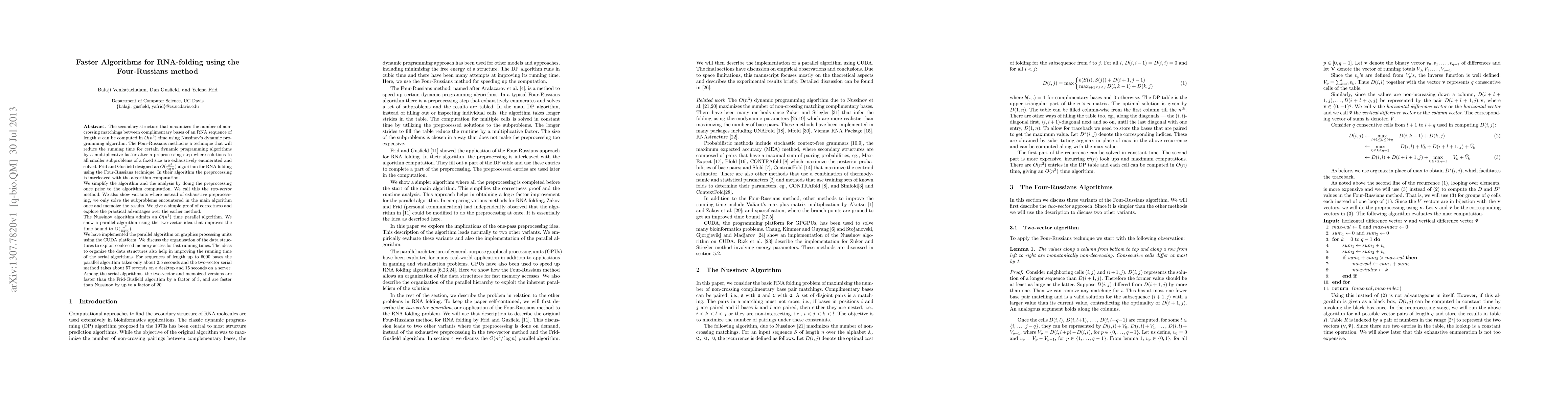This paper presents a simplified version of the Four-Russians method for RNA folding, reducing the time complexity from O(n^3 / log n) to O(n^2) in parallel, and to O(n^2 / log n) serially. The new 'two-vector' method performs better than previous algorithms, including Frid-Gusfield's, and Nussinov's, for RNA sequence lengths up to 6000 bases.