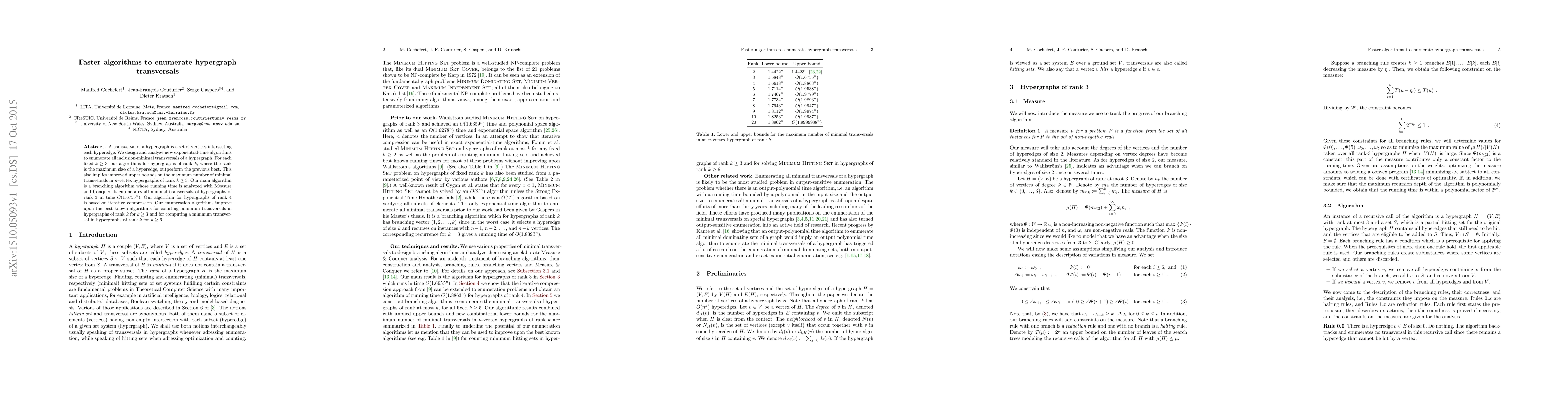 This paper introduces new algorithms for enumerating all minimal transversals of hypergraphs, significantly improving the performance for hypergraphs of rank k>2. The main algorithm, analyzed with Measure and Conquer, achieves an O(1.6755^n) time complexity for hypergraphs of rank 3, outperforming previous methods.