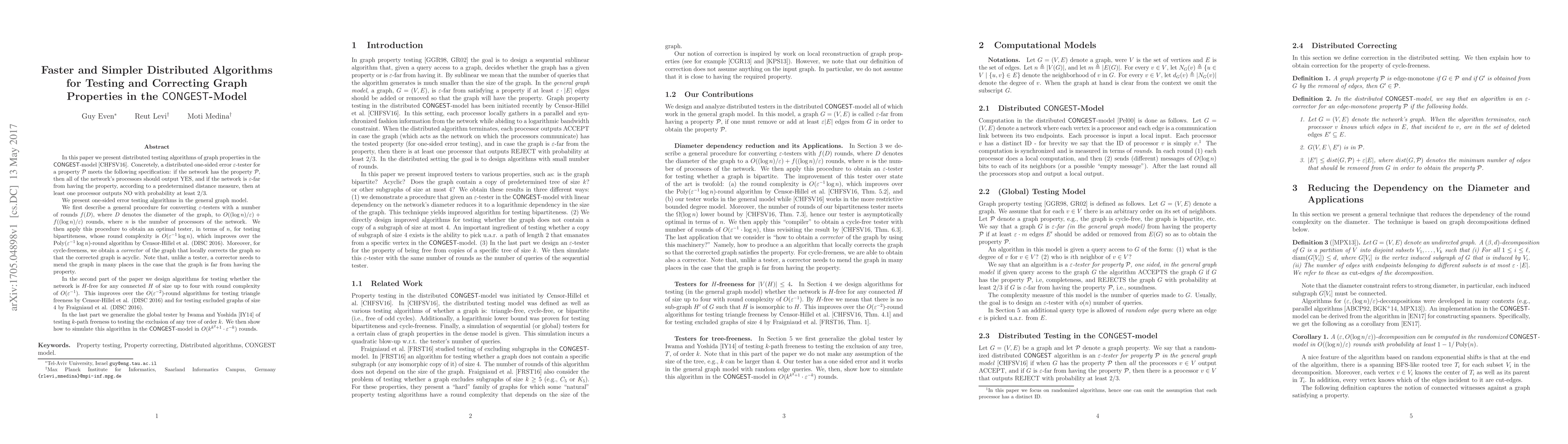 This paper presents improved distributed testing algorithms for graph properties in the CONGEST-model, including an optimal bipartiteness tester with O((log n)/ε) rounds and a cycle-freeness corrector. It also offers O(ε^-1) round algorithms for testing H-freeness for small connected graphs H, and generalizes tree exclusion testing to k-path freeness with a CONGEST-model complexity of O(k^(k^2+1) * ε^-k) rounds.