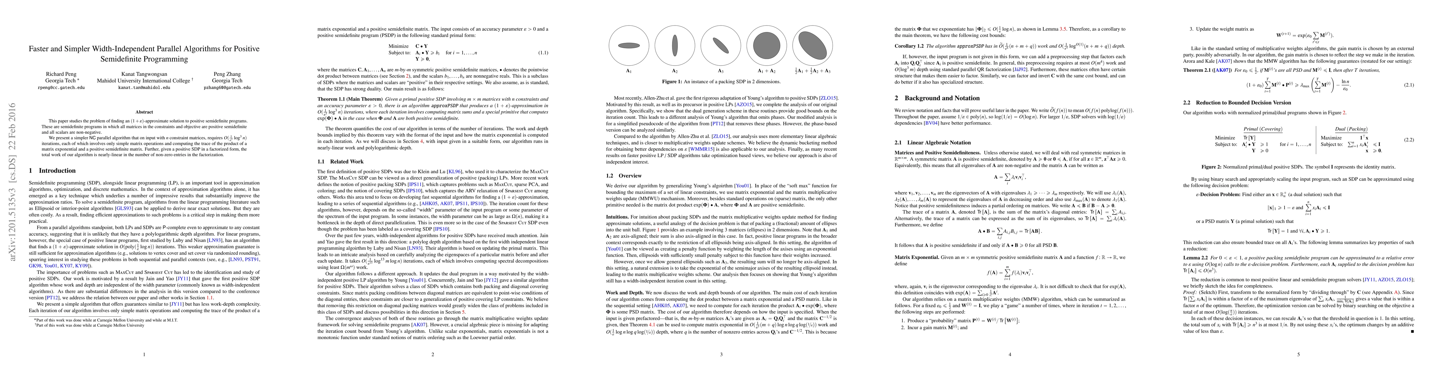 This paper introduces a simplified parallel algorithm for $(1+\epsilon)$-approximating solutions to positive semidefinite programs, requiring $O(\frac{1}{\epsilon^3} \log^3 n)$ iterations and achieving nearly-linear total work in terms of the number of non-zero entries in the input.