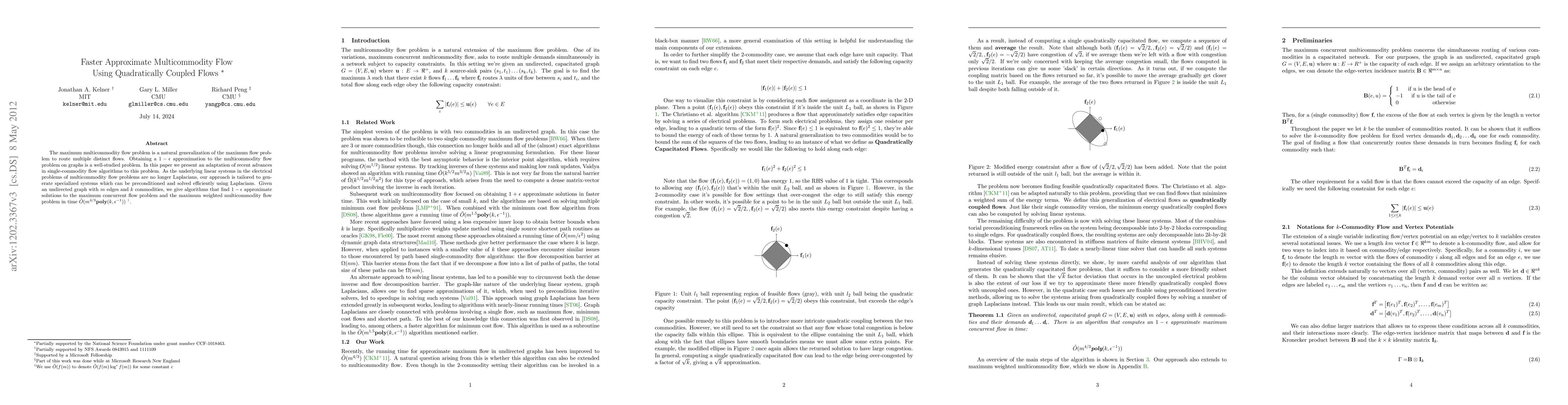 This paper proposes an efficient algorithm for approximating multicommodity flow problems by leveraging recent advances in single-commodity flow algorithms. The approach generates specialized preconditioned systems for faster resolution, achieving $1-\epsilon$ approximations in $\tilde{O}(m^{4/3}\poly(k,\epsilon^{-1}))$ time.