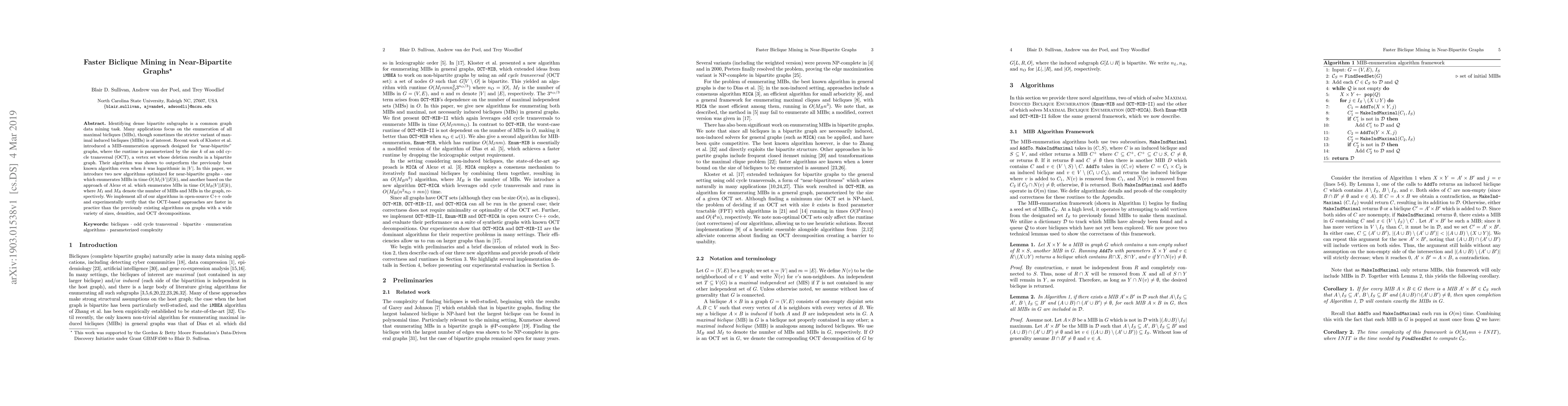 Two new algorithms for finding maximal induced bicliques (MIBs) and maximal bipartite bicliques (MBs) in near-bipartite graphs outperform existing methods, achieving improved time complexities.