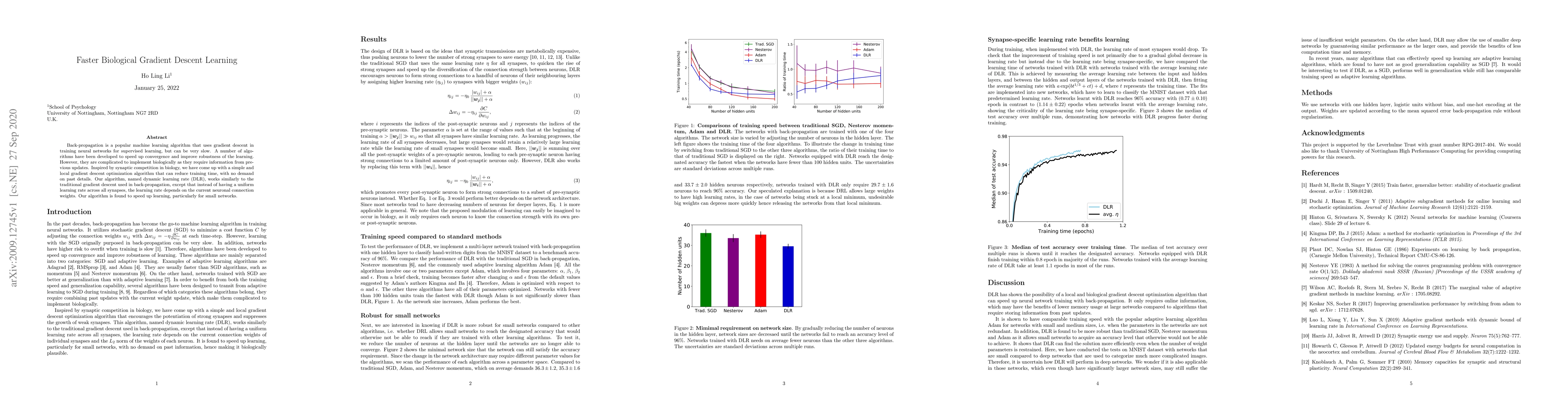 This paper proposes a novel dynamic learning rate (DLR) algorithm inspired by biological synaptic competition to speed up gradient descent learning in neural networks. Unlike traditional back-propagation, DLR adjusts the learning rate based on current synaptic weights, reducing training time without requiring historical update information.