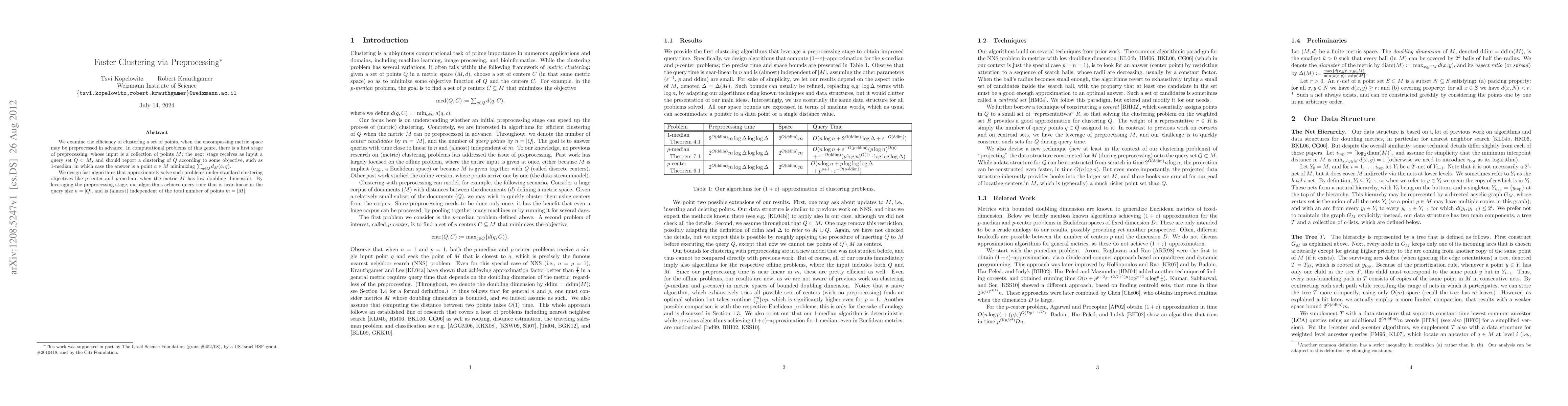 The paper examines clustering efficiency via preprocessing of a metric space, utilizing a two-stage process: preprocessing and query stage. It introduces fast algorithms for clustering objectives like p-center and p-median, achieving near-linear query time independent of the total number of points.