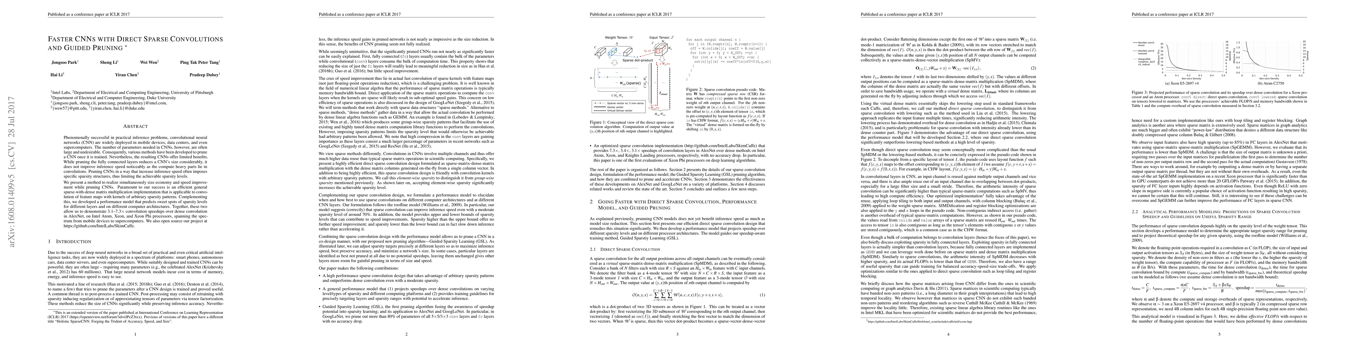 Researchers developed a method to improve the speed and efficiency of convolutional neural networks (CNNs) through direct sparse convolutions and guided pruning, achieving 3.1-7.3x speedups over dense convolutions on various processors.