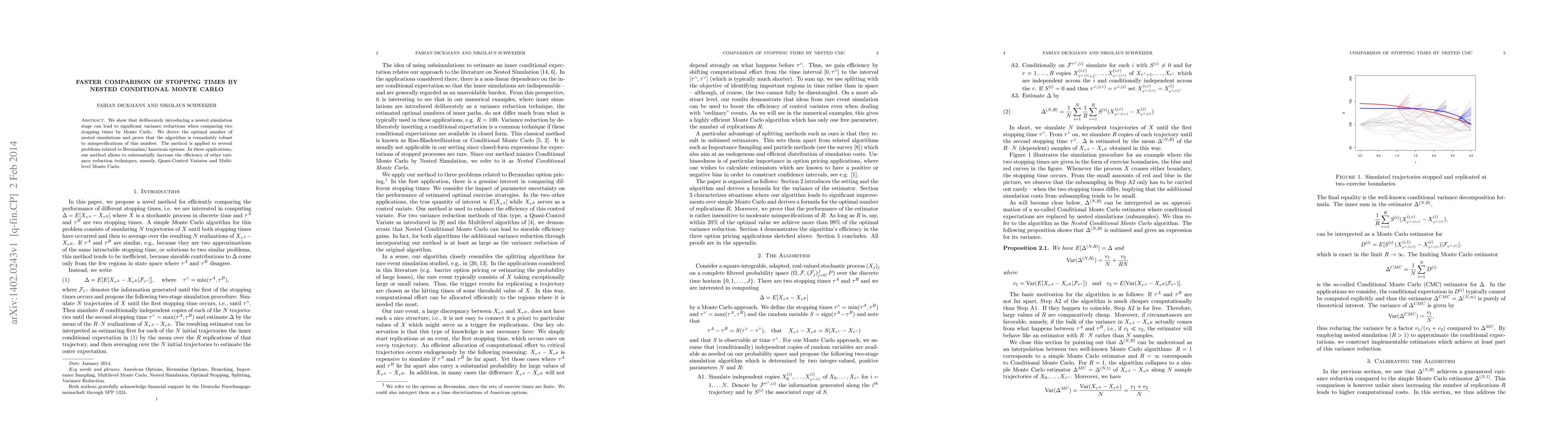 This paper proposes a nested conditional Monte Carlo method for comparing stopping times, achieving significant variance reductions. The method is robust and enhances the efficiency of Quasi-Control Variates and Multilevel Monte Carlo techniques, particularly in valuing Bermudan/American options.
