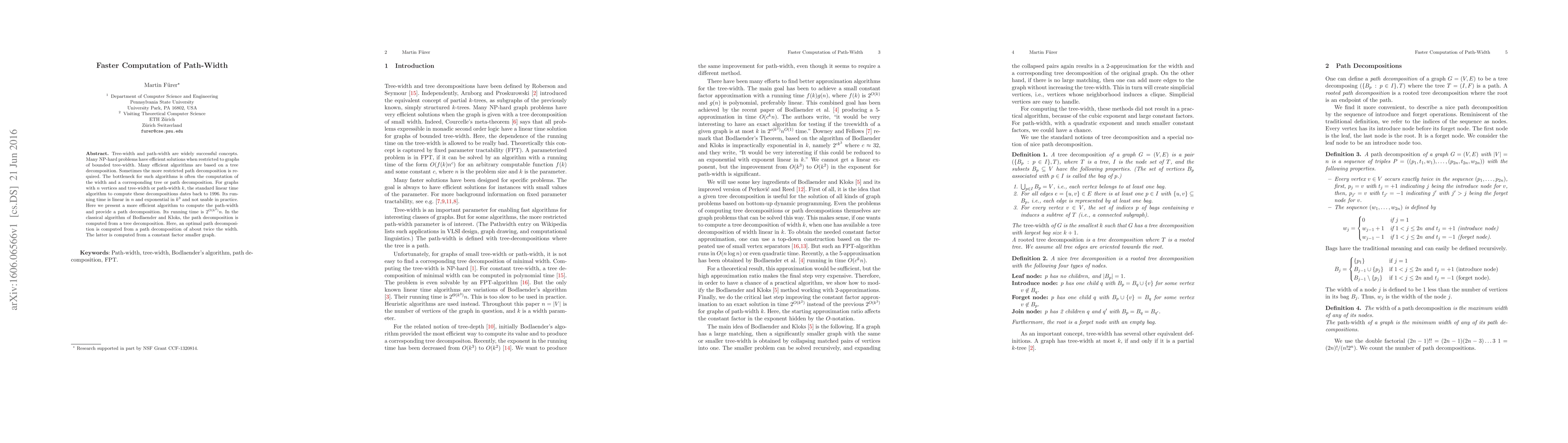 This paper presents a more efficient algorithm for computing the path-width of a graph, running in $2^{O(k^2)} n$ time, significantly improving upon the previous linear time algorithm that is impractical for large $k$. The new method directly computes an optimal path decomposition, bypassing the need for a tree decomposition.