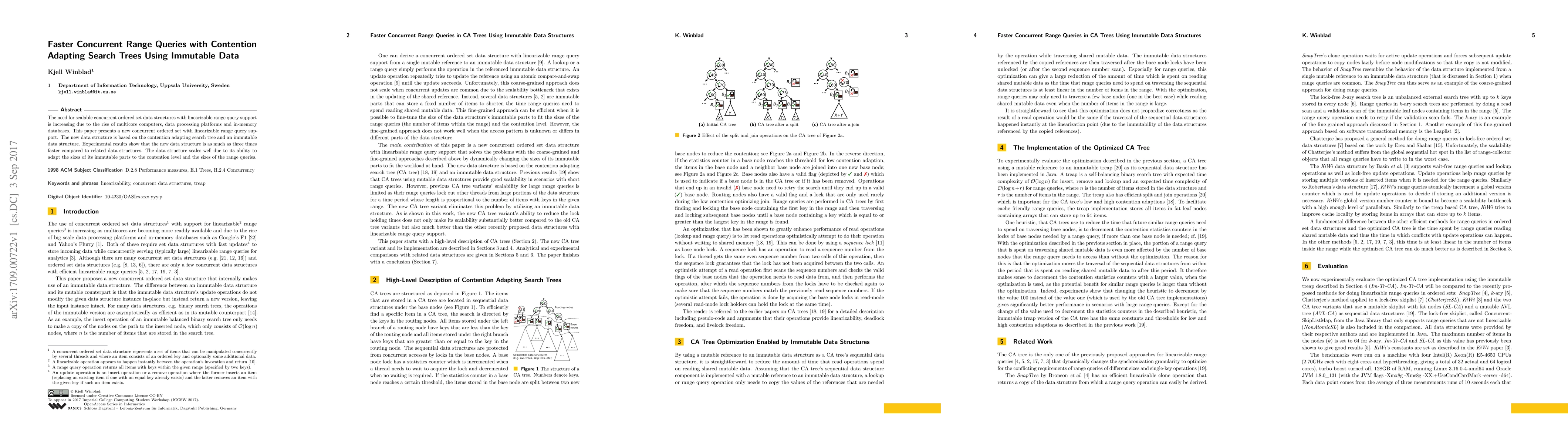 This paper introduces a concurrent ordered set using contention adapting search trees and immutable data to support linearizable range queries, achieving up to three times faster performance compared to existing structures. The design scales effectively by dynamically adjusting the size of its immutable components based on contention levels and query sizes.
