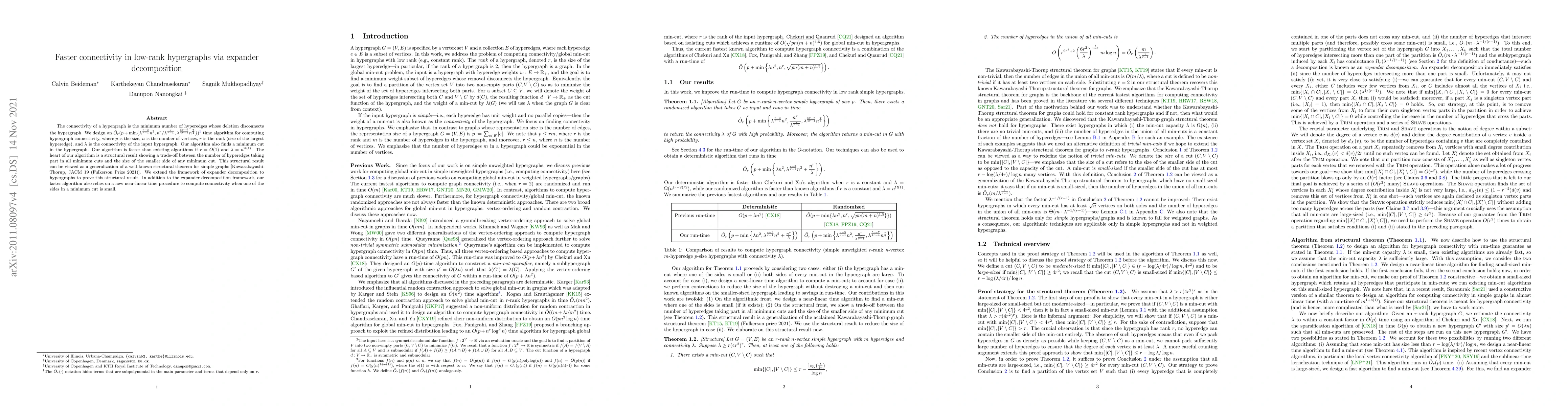 We design an algorithm for computing connectivity in hypergraphs which runs in time $\hat O_r(p + \min\{\lambda^{\frac{r-3}{r-1}} n^2, n^r/\lambda^{r/(r-1)}\})$ (the $\hat O_r(\cdot)$ hides the terms subpolynomial in the main parameter and terms that depend only on $r$) where $p$ is the size, $n$ is the number of vertices, and $r$ is the rank of the hypergraph. Our algorithm is faster than existing algorithms when the the rank is constant and the connectivity $\lambda$ is $\omega(1)$. At the heart of our algorithm is a structural result regarding min-cuts in simple hypergraphs. We show a trade-off between the number of hyperedges taking part in all min-cuts and the size of the smaller side of the min-cut. This structural result can be viewed as a generalization of a well-known structural theorem for simple graphs [Kawarabayashi-Thorup, JACM 19]. We extend the framework of expander decomposition to simple hypergraphs in order to prove this structural result. We also make the proof of the structural result constructive to obtain our faster hypergraph connectivity algorithm.