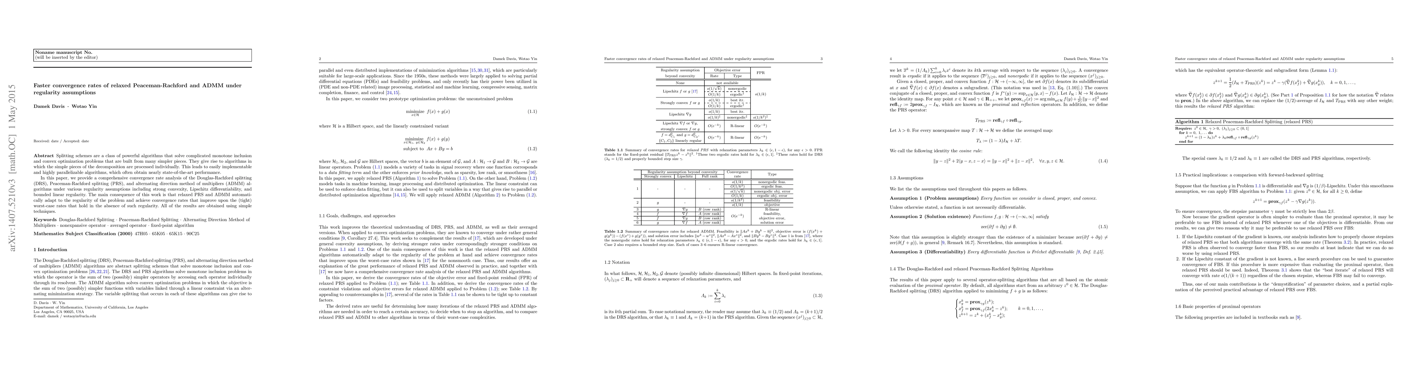 This paper analyzes the convergence rates of Douglas-Rachford, Peaceman-Rachford splitting, and ADMM algorithms under various regularity assumptions. It demonstrates that relaxed PRS and ADMM adapt to problem regularity, achieving faster convergence rates than standard worst-case rates.