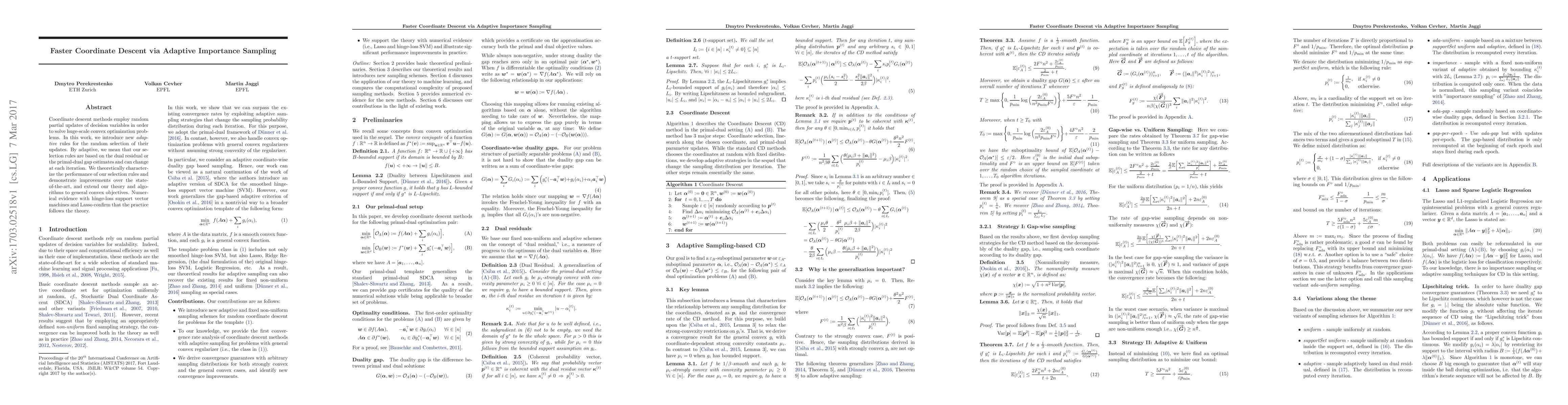 Coordinate descent methods employ random partial updates of decision variables in order to solve huge-scale convex optimization problems. In this work, we introduce new adaptive rules for the random selection of their updates. By adaptive, we mean that our selection rules are based on the dual residual or the primal-dual gap estimates and can change at each iteration. We theoretically characterize the performance of our selection rules and demonstrate improvements over the state-of-the-art, and extend our theory and algorithms to general convex objectives. Numerical evidence with hinge-loss support vector machines and Lasso confirm that the practice follows the theory.