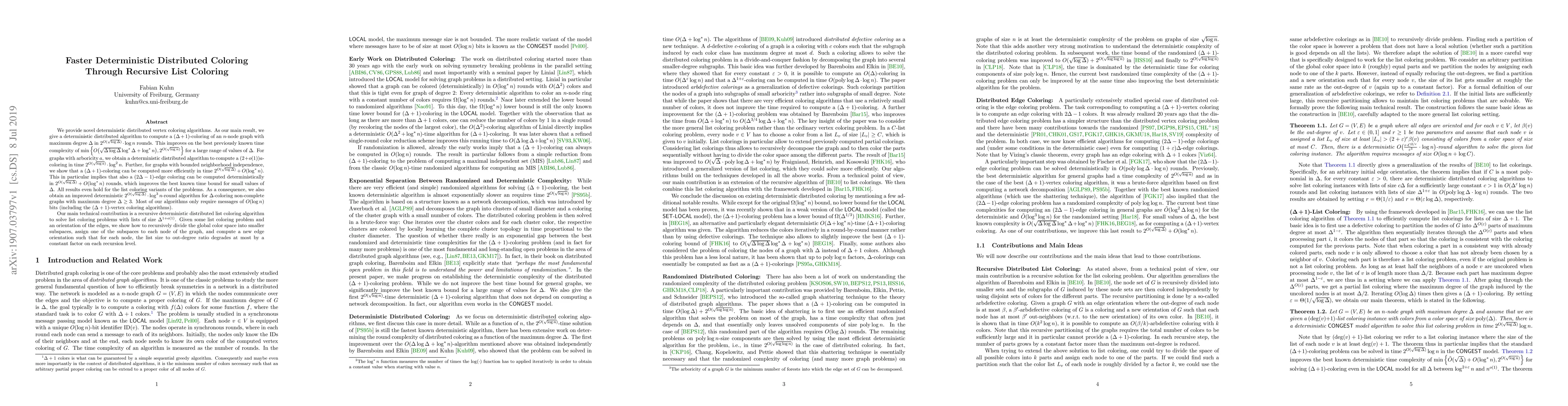 This paper presents novel deterministic distributed algorithms for vertex and edge coloring in graphs, achieving improved time complexities for $(\Delta+1)$-coloring and $(2+o(1))a$-coloring. The main technique is a recursive deterministic distributed list coloring algorithm that efficiently divides the color space and manages list size degradation.