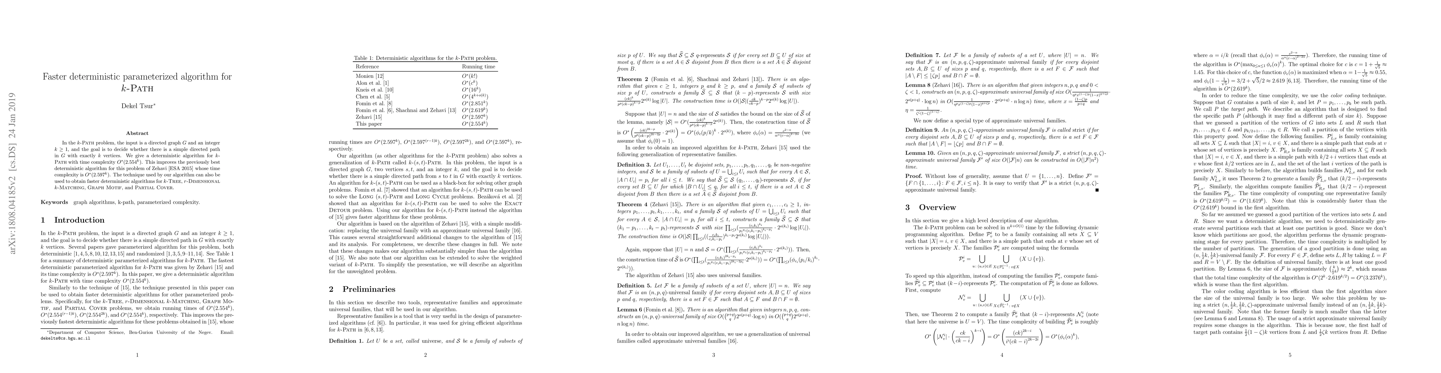 This paper presents a deterministic algorithm for the k-Path problem with improved time complexity of $O^*(2.554^k)$, surpassing Zehavi's previous best algorithm with $O^*(2.597^k)$. The technique is also applicable to other problems like k-Tree, r-Dimensional k-Matching, Graph Motif, and Partial Cover.