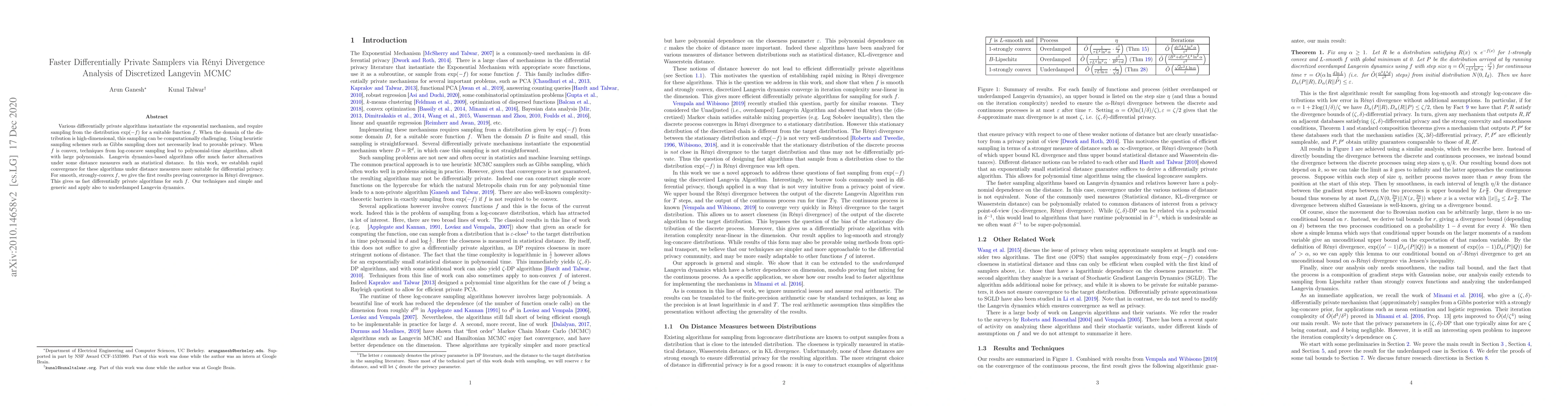 This paper presents faster differentially private sampling algorithms based on discretized Langevin MCMC, achieving rapid convergence under Rényi divergence for smooth, strongly-convex functions. The proposed methods offer significant speed improvements over existing polynomial-time algorithms while maintaining provable privacy guarantees.