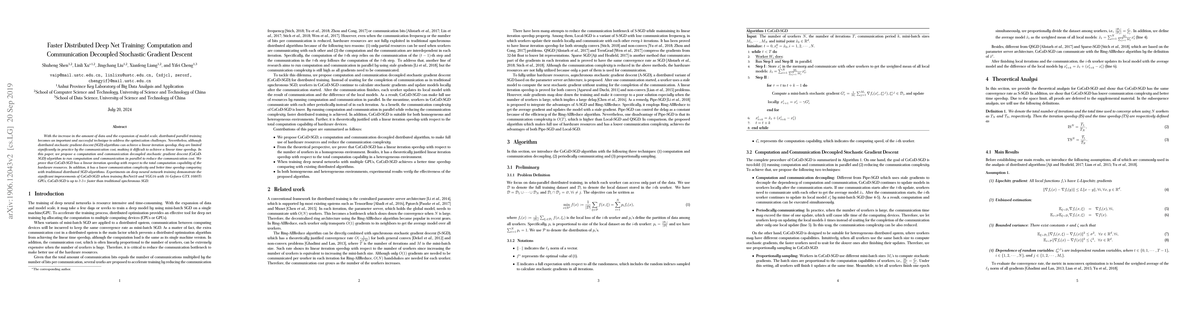 This paper introduces a novel CoCoD-SGD algorithm that decouples computation and communication in distributed deep learning training to reduce communication costs. The proposed method achieves linear iteration speedup and demonstrates significant improvements in training speed for ResNet18 and VGG16 models compared to traditional synchronous SGD.