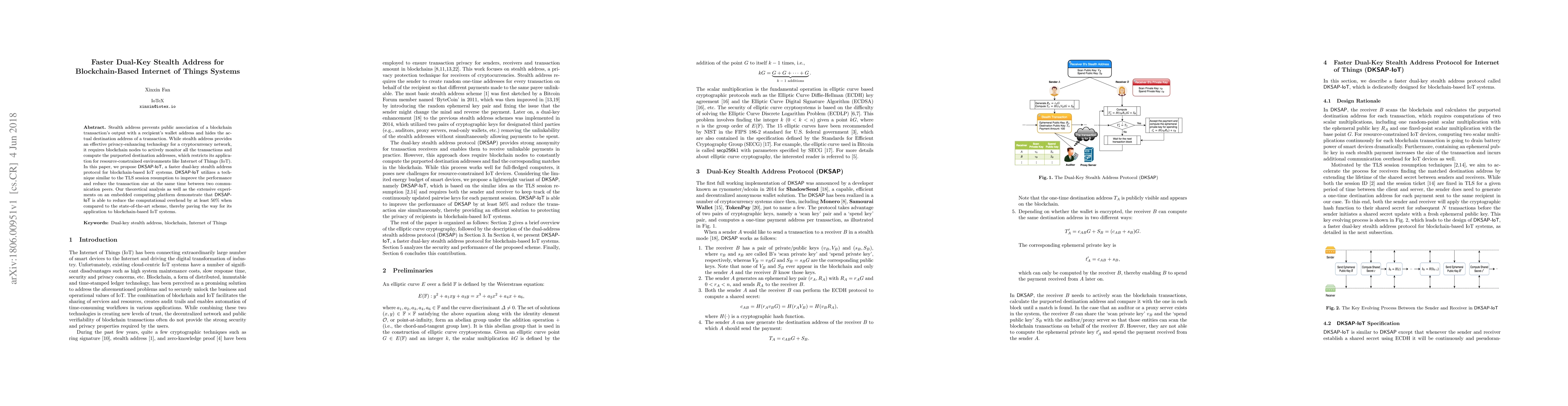 This paper proposes DKSAP-IoT, a faster dual-key stealth address protocol for blockchain-based IoT systems, which reduces computational overhead by at least 50% compared to existing methods, enhancing privacy and efficiency in resource-constrained environments.
