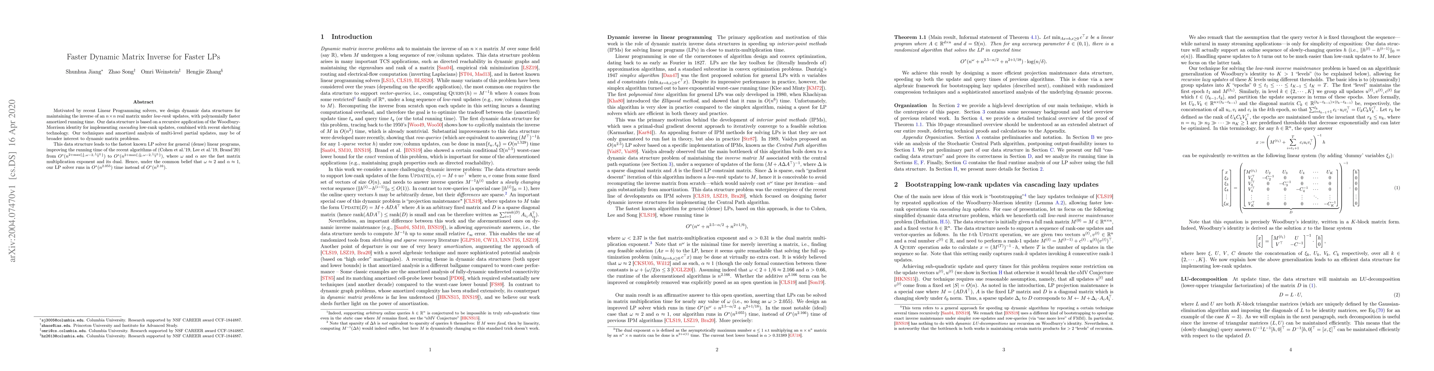 Motivated by recent Linear Programming solvers, we design dynamic data structures for maintaining the inverse of an $n\times n$ real matrix under $\textit{low-rank}$ updates, with polynomially faster amortized running time. Our data structure is based on a recursive application of the Woodbury-Morrison identity for implementing $\textit{cascading}$ low-rank updates, combined with recent sketching technology. Our techniques and amortized analysis of multi-level partial updates, may be of broader interest to dynamic matrix problems. This data structure leads to the fastest known LP solver for general (dense) linear programs, improving the running time of the recent algorithms of (Cohen et al.'19, Lee et al.'19, Brand'20) from $O^*(n^{2+ \max\{\frac{1}{6}, \omega-2, \frac{1-\alpha}{2}\}})$ to $O^*(n^{2+\max\{\frac{1}{18}, \omega-2, \frac{1-\alpha}{2}\}})$, where $\omega$ and $\alpha$ are the fast matrix multiplication exponent and its dual. Hence, under the common belief that $\omega \approx 2$ and $\alpha \approx 1$, our LP solver runs in $O^*(n^{2.055})$ time instead of $O^*(n^{2.16})$.