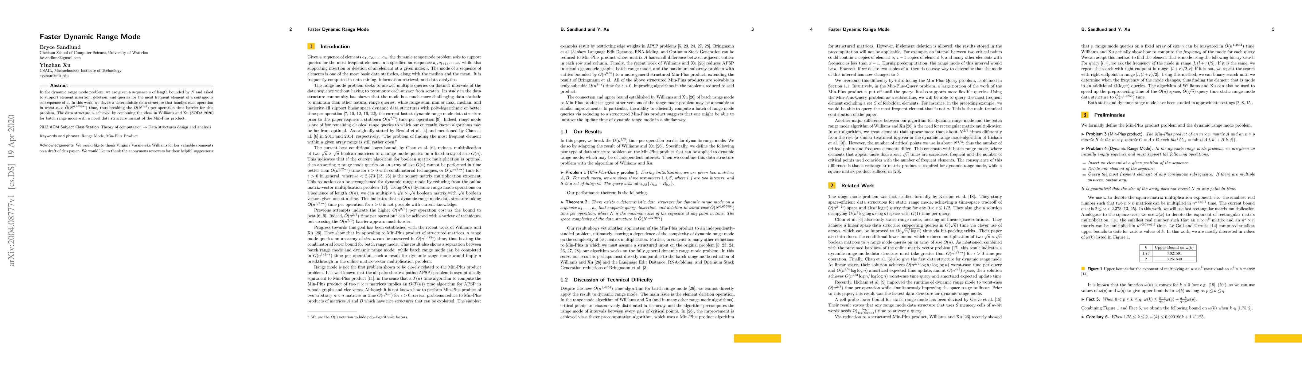 A new data structure breaks the $O(N^{2/3})$ per-operation time barrier for the dynamic range mode problem, achieving worst-case $ ilde{O}(N^{0.655994})$ time for element insertion, deletion, and queries for the most frequent element of a contiguous subsequence.