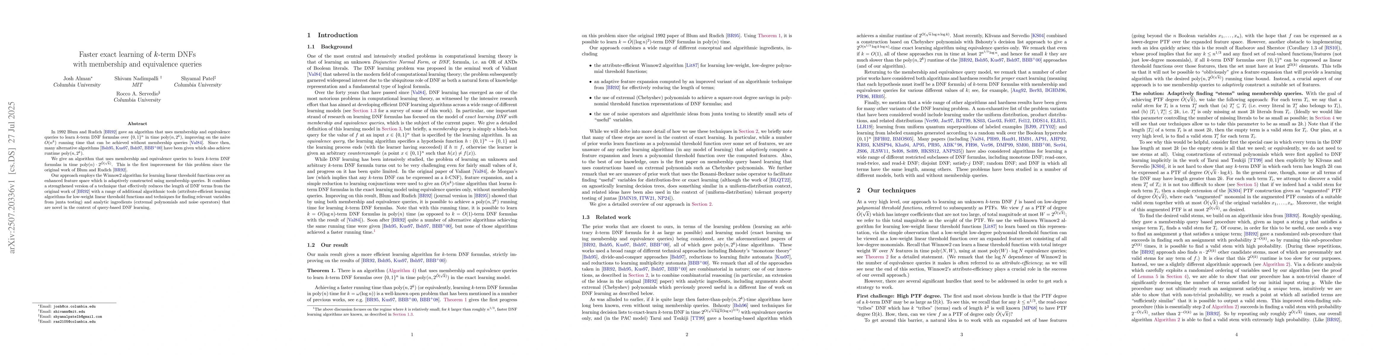 In 1992 Blum and Rudich [BR92] gave an algorithm that uses membership and equivalence queries to learn $k$-term DNF formulas over $\{0,1\}^n$ in time $\textsf{poly}(n,2^k)$, improving on the naive $O(n^k)$ running time that can be achieved without membership queries [Val84]. Since then, many alternative algorithms [Bsh95, Kus97, Bsh97, BBB+00] have been given which also achieve runtime $\textsf{poly}(n,2^k)$. We give an algorithm that uses membership and equivalence queries to learn $k$-term DNF formulas in time $\textsf{poly}(n) \cdot 2^{\tilde{O}(\sqrt{k})}$. This is the first improvement for this problem since the original work of Blum and Rudich [BR92]. Our approach employs the Winnow2 algorithm for learning linear threshold functions over an enhanced feature space which is adaptively constructed using membership queries. It combines a strengthened version of a technique that effectively reduces the length of DNF terms from the original work of [BR92] with a range of additional algorithmic tools (attribute-efficient learning algorithms for low-weight linear threshold functions and techniques for finding relevant variables from junta testing) and analytic ingredients (extremal polynomials and noise operators) that are novel in the context of query-based DNF learning.