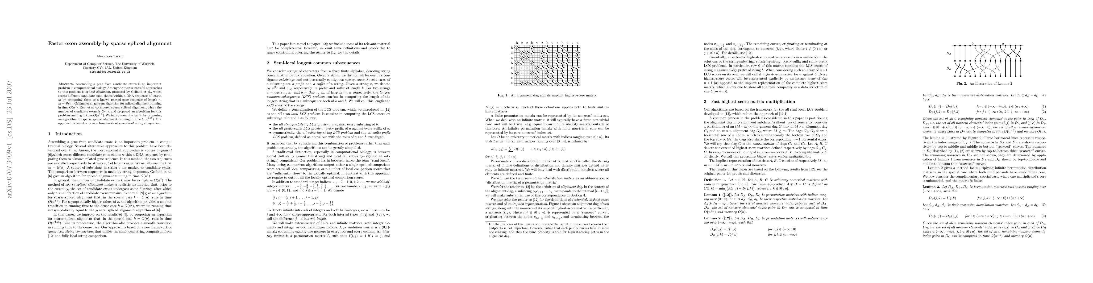 Assembling a gene from candidate exons is an important problem in computational biology. Among the most successful approaches to this problem is \emph{spliced alignment}, proposed by Gelfand et al., which scores different candidate exon chains within a DNA sequence of length $m$ by comparing them to a known related gene sequence of length n, $m = \Theta(n)$. Gelfand et al.\ gave an algorithm for spliced alignment running in time O(n^3). Kent et al.\ considered sparse spliced alignment, where the number of candidate exons is O(n), and proposed an algorithm for this problem running in time O(n^{2.5}). We improve on this result, by proposing an algorithm for sparse spliced alignment running in time O(n^{2.25}). Our approach is based on a new framework of \emph{quasi-local string comparison}.