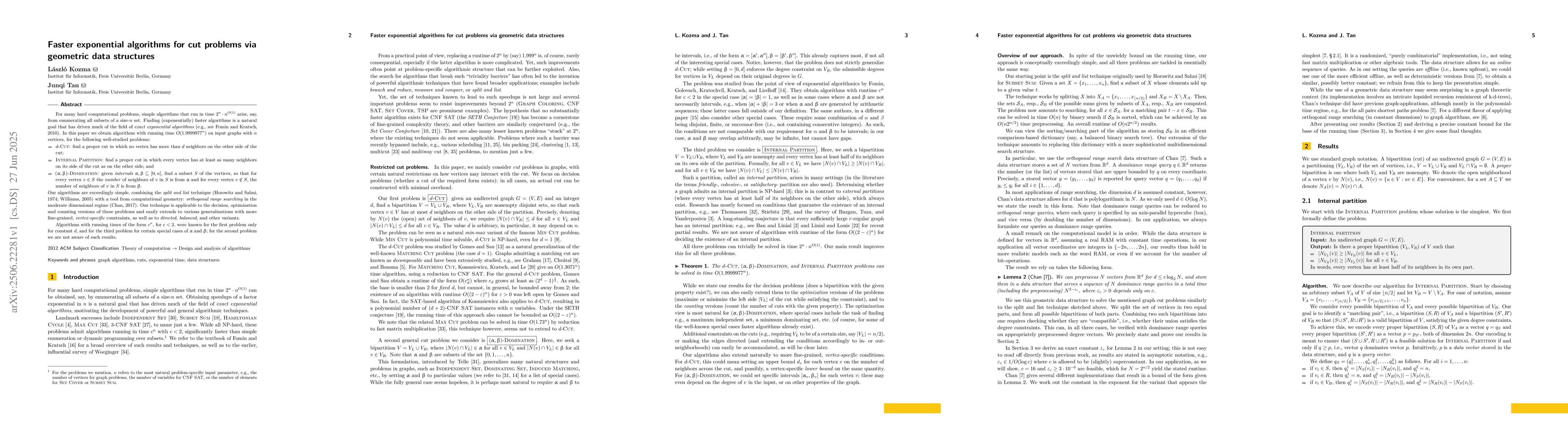 For many hard computational problems, simple algorithms that run in time $2^n \cdot n^{O(1)}$ arise, say, from enumerating all subsets of a size-$n$ set. Finding (exponentially) faster algorithms is a natural goal that has driven much of the field of exact exponential algorithms (e.g., see Fomin and Kratsch, 2010). In this paper we obtain algorithms with running time $O(1.9999977^n)$ on input graphs with $n$ vertices, for the following well-studied problems: - $d$-Cut: find a proper cut in which no vertex has more than $d$ neighbors on the other side of the cut; - Internal Partition: find a proper cut in which every vertex has at least as many neighbors on its side of the cut as on the other side; and - ($\alpha,\beta$)-Domination: given intervals $\alpha,\beta \subseteq [0,n]$, find a subset $S$ of the vertices, so that for every vertex $v \in S$ the number of neighbors of $v$ in $S$ is from $\alpha$ and for every vertex $v \notin S$, the number of neighbors of $v$ in $S$ is from $\beta$. Our algorithms are exceedingly simple, combining the split and list technique (Horowitz and Sahni, 1974; Williams, 2005) with a tool from computational geometry: orthogonal range searching in the moderate dimensional regime (Chan, 2017). Our technique is applicable to the decision, optimization and counting versions of these problems and easily extends to various generalizations with more fine-grained, vertex-specific constraints, as well as to directed, balanced, and other variants. Algorithms with running times of the form $c^n$, for $c<2$, were known for the first problem only for constant $d$, and for the third problem for certain special cases of $\alpha$ and $\beta$; for the second problem we are not aware of such results.