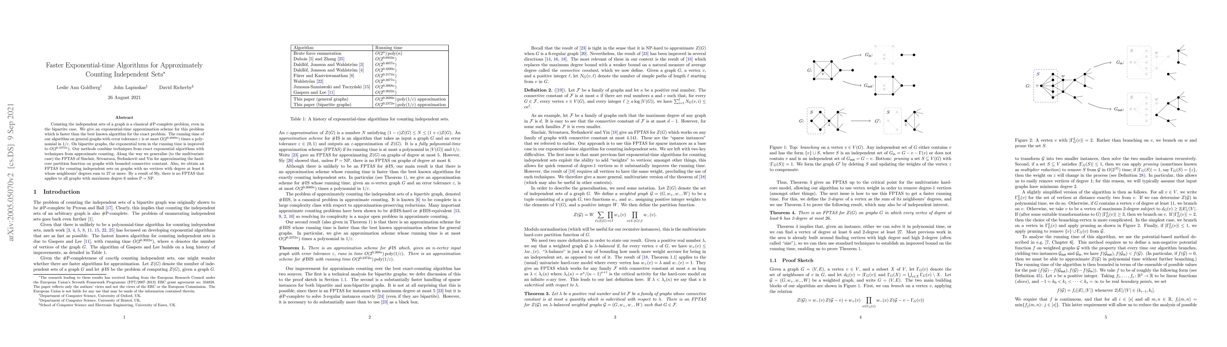 Counting the independent sets of a graph is a classical #P-complete problem, even in the bipartite case. We give an exponential-time approximation scheme for this problem which is faster than the best known algorithm for the exact problem. The running time of our algorithm on general graphs with error tolerance $\varepsilon$ is at most $O(2^{0.2680n})$ times a polynomial in $1/\varepsilon$. On bipartite graphs, the exponential term in the running time is improved to $O(2^{0.2372n})$. Our methods combine techniques from exact exponential algorithms with techniques from approximate counting. Along the way we generalise (to the multivariate case) the FPTAS of Sinclair, Srivastava, \v{S}tefankovi\v{c} and Yin for approximating the hard-core partition function on graphs with bounded connective constant. Also, we obtain an FPTAS for counting independent sets on graphs with no vertices with degree at least 6 whose neighbours' degrees sum to 27 or more. By a result of Sly, there is no FPTAS that applies to all graphs with maximum degree 6 unless $\mbox{P}=\mbox{NP}$.