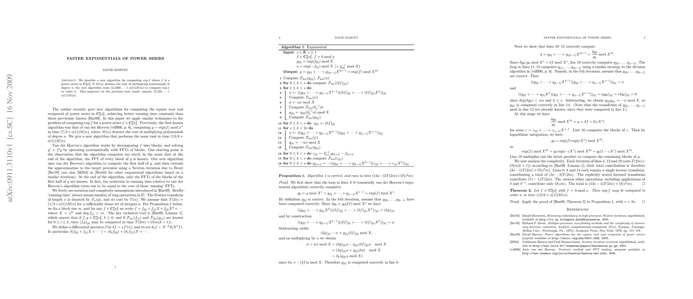 Researchers have developed an algorithm to compute exponentials of power series faster than previous methods, reducing the cost from 2.333... + o(1)M(n) to 2.1666... + o(1)M(n).