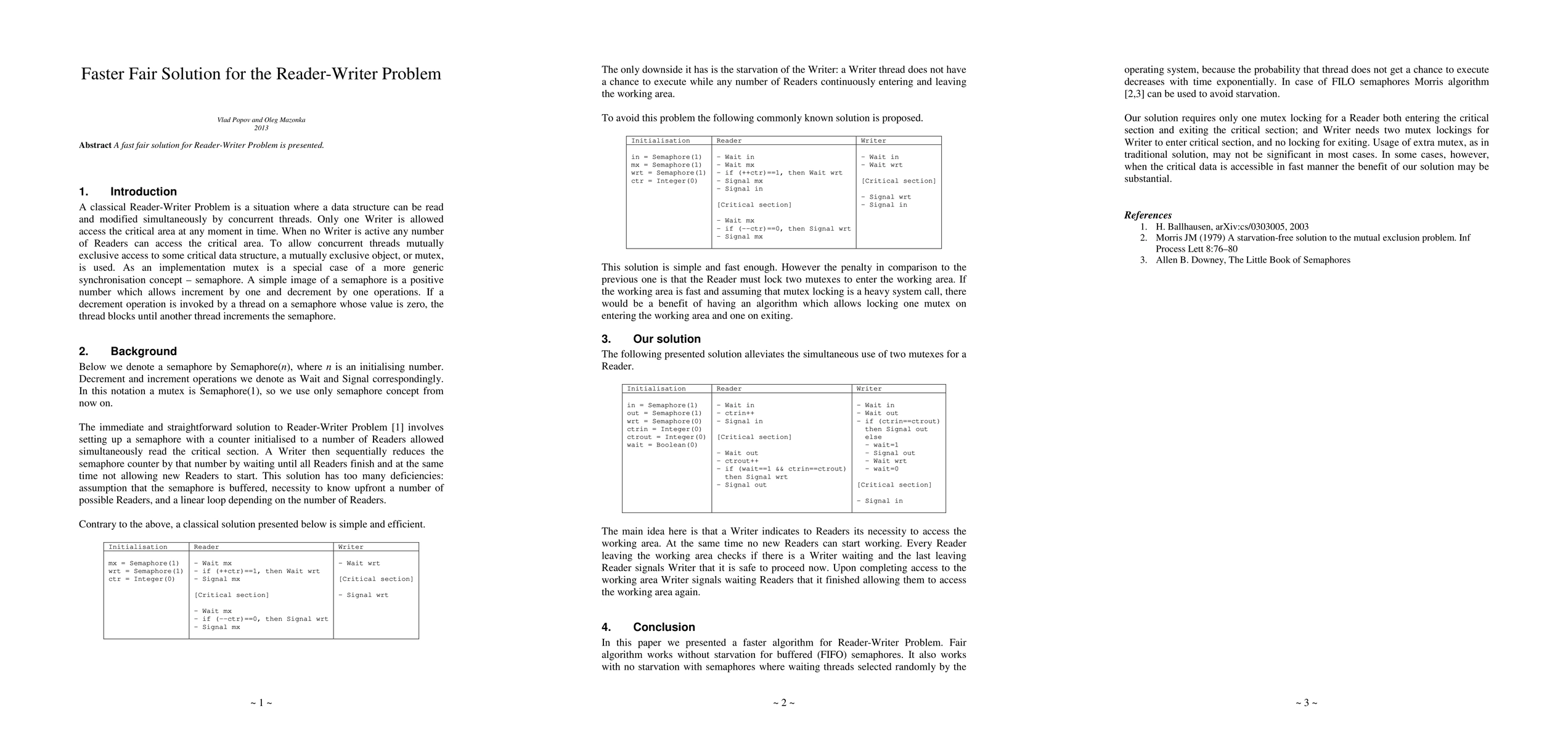 Summary: This paper introduces an efficient and fair algorithm to resolve the Reader-Writer Problem, ensuring optimal performance and equitable access between multiple readers and writers. The proposed solution aims to minimize contention and maximize throughput in concurrent environments.