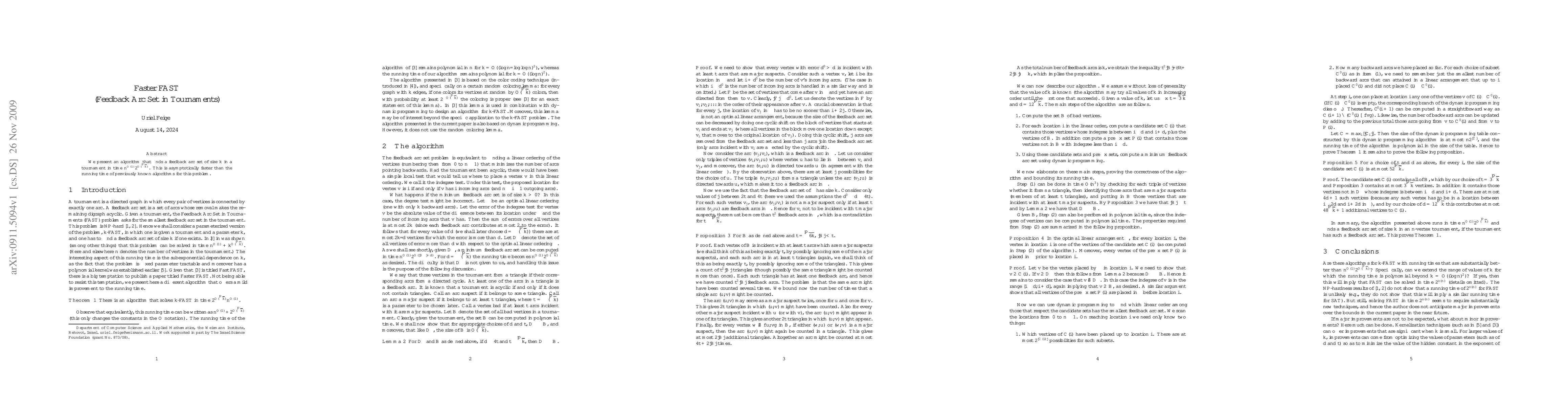 Summary: This paper introduces an algorithm that efficiently finds a feedback arc set of size $k$ in a tournament, achieving a runtime of $n^{O(1)}2^{O(\sqrt{k})}$, outperforming previous methods. The new approach significantly reduces the computational complexity.