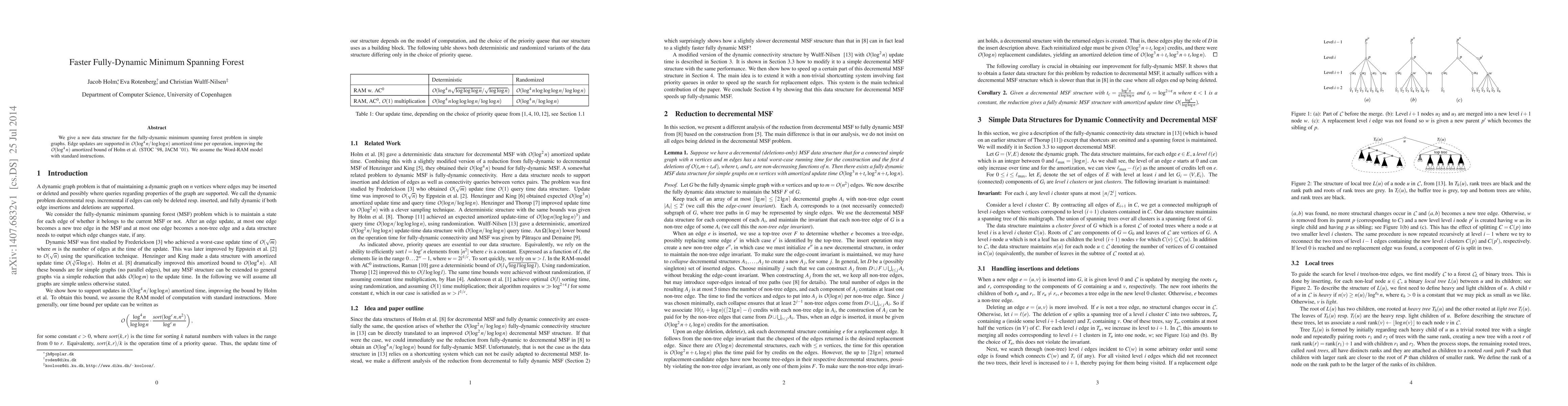 We give a new data structure for the fully-dynamic minimum spanning forest problem in simple graphs. Edge updates are supported in $O(\log^4n/\log\log n)$ amortized time per operation, improving the $O(\log^4n)$ amortized bound of Holm et al. (STOC'98, JACM'01). We assume the Word-RAM model with standard instructions.