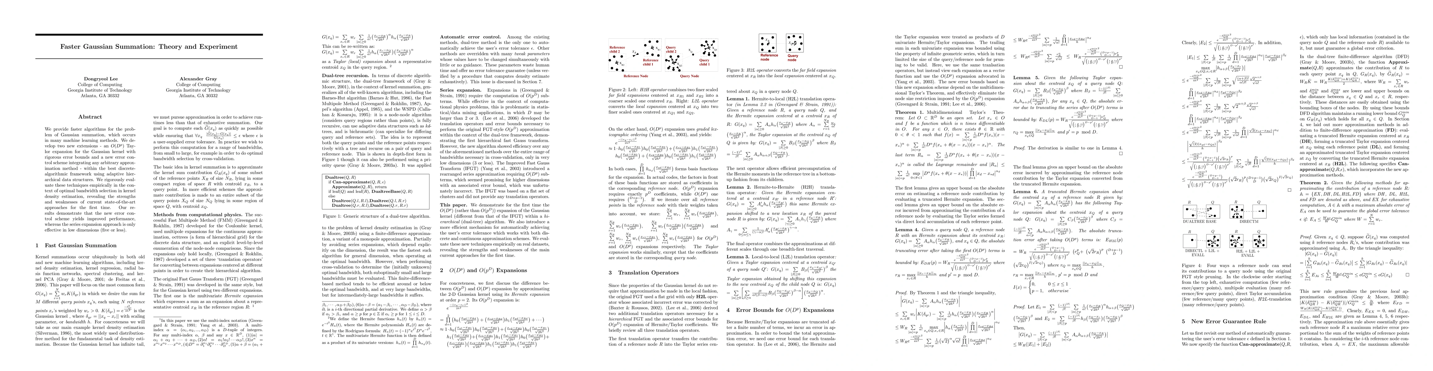 This paper introduces faster algorithms for Gaussian summation, crucial in machine learning, featuring a new O(Dp) Taylor expansion and an adaptive error control scheme. Empirical evaluations show the error control scheme enhances performance, while the Taylor expansion is effective mainly in low dimensions.