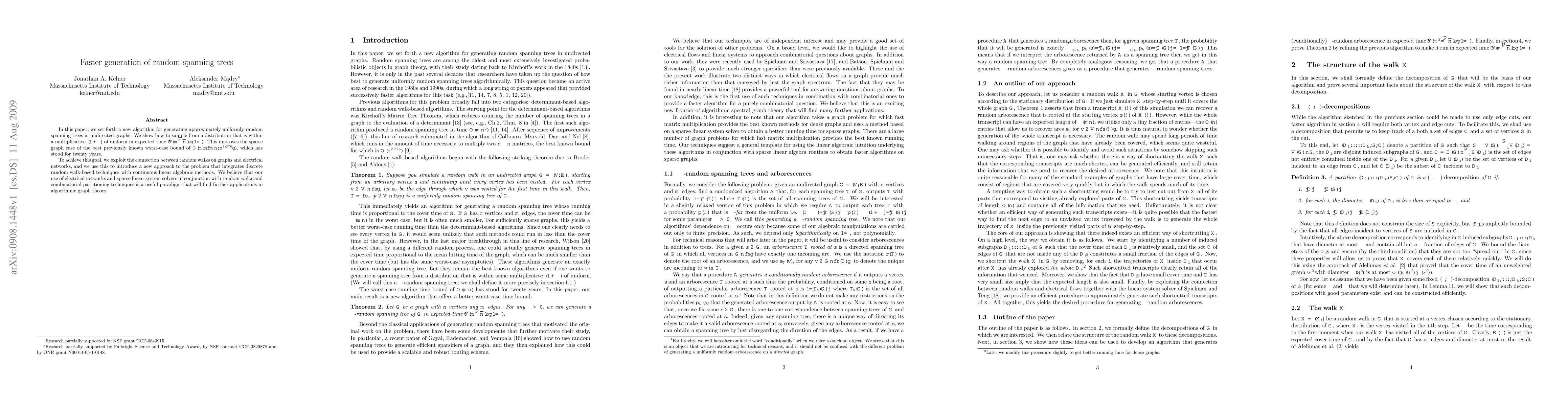 Researchers developed a new algorithm to generate random spanning trees in undirected graphs, achieving an improved worst-case bound of O(m√n log 1/δ) for uniformly random sampling.