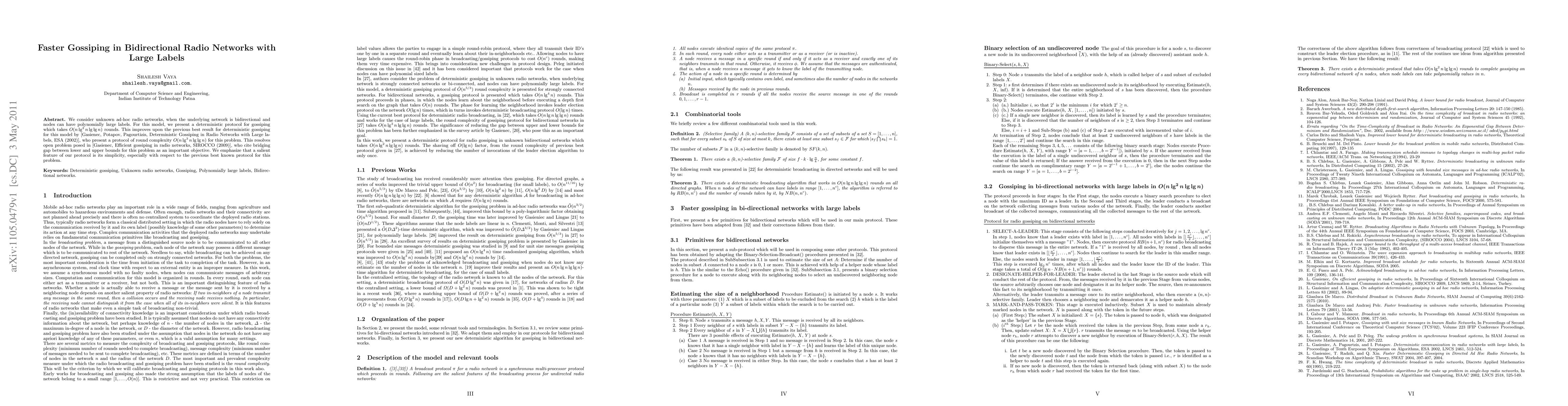We consider unknown ad-hoc radio networks, when the underlying network is bidirectional and nodes can have polynomially large labels. For this model, we present a deterministic protocol for gossiping which takes $O(n \lg^2 n \lg \lg n)$ rounds. This improves upon the previous best result for deterministic gossiping for this model by [Gasienec, Potapov, Pagourtizis, Deterministic Gossiping in Radio Networks with Large labels, ESA (2002)], who present a protocol of round complexity $O(n \lg^3 n \lg \lg n)$ for this problem. This resolves open problem posed in [Gasienec, Efficient gossiping in radio networks, SIROCCO (2009)], who cite bridging gap between lower and upper bounds for this problem as an important objective. We emphasize that a salient feature of our protocol is its simplicity, especially with respect to the previous best known protocol for this problem.