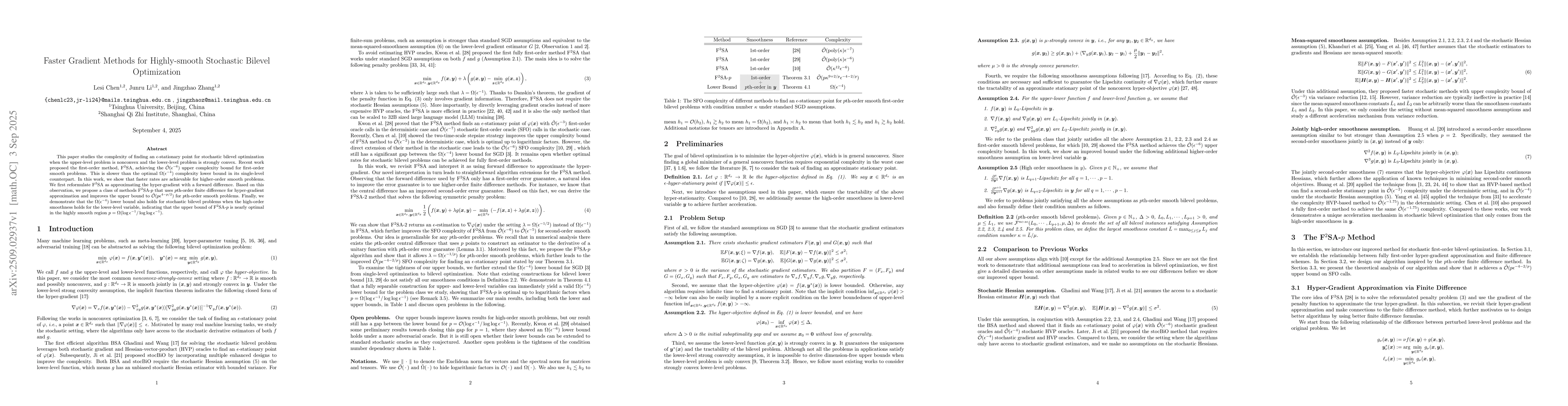 This paper studies the complexity of finding an $\epsilon$-stationary point for stochastic bilevel optimization when the upper-level problem is nonconvex and the lower-level problem is strongly convex. Recent work proposed the first-order method, F${}^2$SA, achieving the $\tilde{\mathcal{O}}(\epsilon^{-6})$ upper complexity bound for first-order smooth problems. This is slower than the optimal $\Omega(\epsilon^{-4})$ complexity lower bound in its single-level counterpart. In this work, we show that faster rates are achievable for higher-order smooth problems. We first reformulate F$^2$SA as approximating the hyper-gradient with a forward difference. Based on this observation, we propose a class of methods F${}^2$SA-$p$ that uses $p$th-order finite difference for hyper-gradient approximation and improves the upper bound to $\tilde{\mathcal{O}}(p \epsilon^{4-p/2})$ for $p$th-order smooth problems. Finally, we demonstrate that the $\Omega(\epsilon^{-4})$ lower bound also holds for stochastic bilevel problems when the high-order smoothness holds for the lower-level variable, indicating that the upper bound of F${}^2$SA-$p$ is nearly optimal in the highly smooth region $p = \Omega( \log \epsilon^{-1} / \log \log \epsilon^{-1})$.