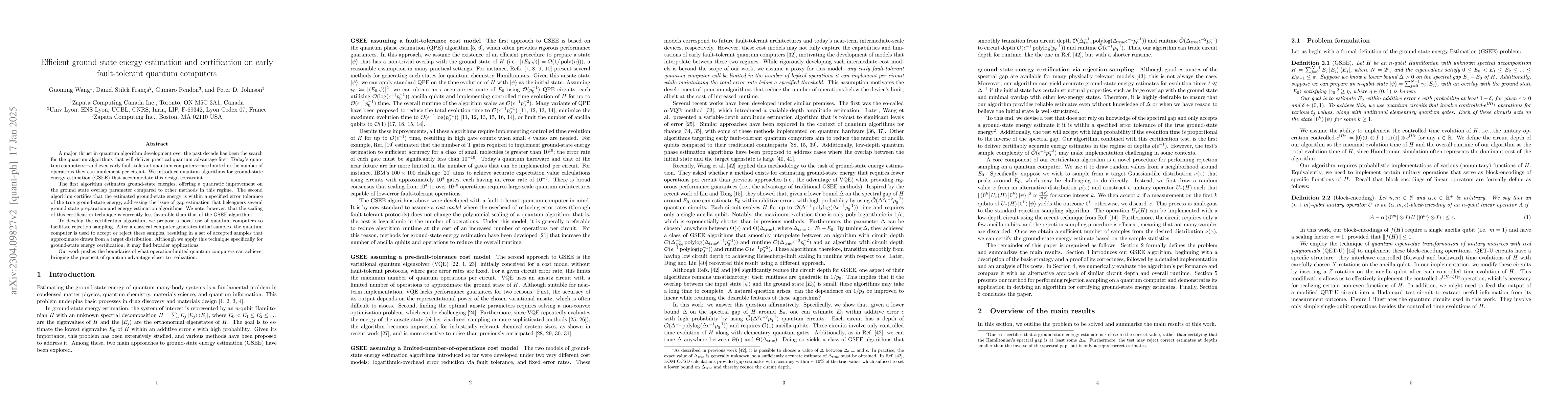 A major thrust in quantum algorithm development over the past decade has been the search for the quantum algorithms that will deliver practical quantum advantage first. Today's quantum computers and even early fault-tolerant quantum computers will be limited in the number of operations they can implement per circuit. We introduce quantum algorithms for ground state energy estimation (GSEE) that accommodate this design constraint. The first estimates ground state energies and has a quadratic improvement on the ground state overlap parameter compared to other methods in this regime. The second certifies that the estimated ground state energy is within a specified error tolerance of the true ground state energy, addressing the issue of gap estimation that beleaguers several ground state preparation and energy estimation algorithms. We note, however, that the scaling of this certification technique is, unfortunately, worse than that of the GSEE algorithm. These algorithms are based on a novel use of the quantum computer to facilitate rejection sampling. After a classical computer is used to draw samples, the quantum computer is used to accept or reject the samples. The set of accepted samples correspond to draws from a target distribution. While we use this technique for ground state energy estimation, it may find broader application. Our work pushes the boundaries of what operation-limited quantum computers are capable of and thus brings the target of quantum advantage closer to the present.