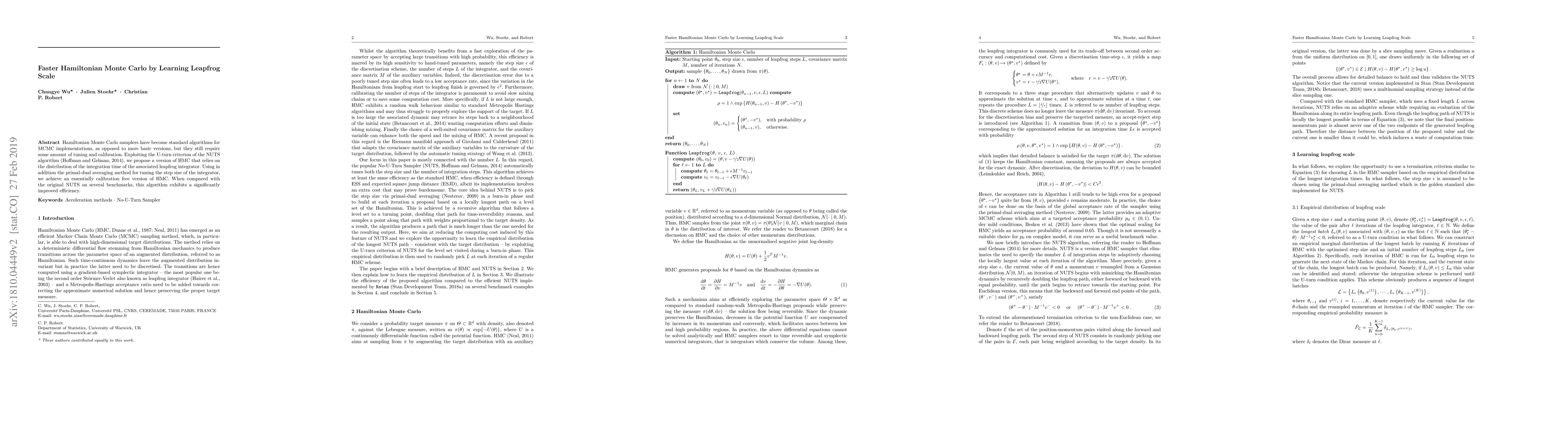 This paper proposes a calibration-free version of Hamiltonian Monte Carlo (HMC) that leverages the distribution of the integration time of the leapfrog integrator and uses primal-dual averaging for tuning, achieving faster sampling efficiency compared to the original NUTS algorithm. The method eliminates the need for manual tuning, enhancing the practical application of HMC.