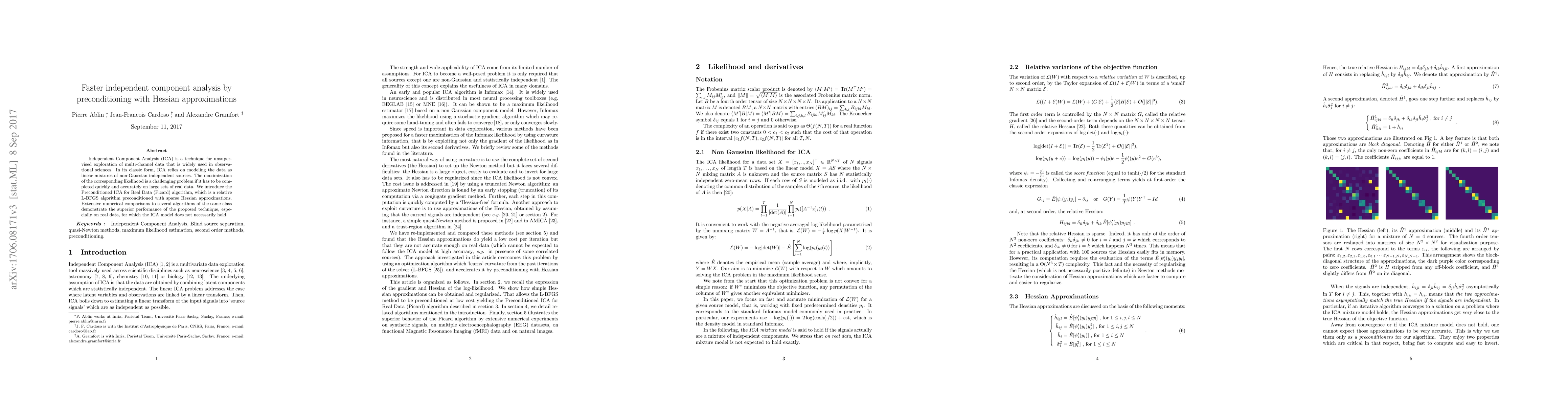 A new ICA algorithm called Preconditioned ICA for Real Data (Picard) outperforms traditional methods on real data, leveraging sparse Hessian approximations to speed up the maximization of likelihood.