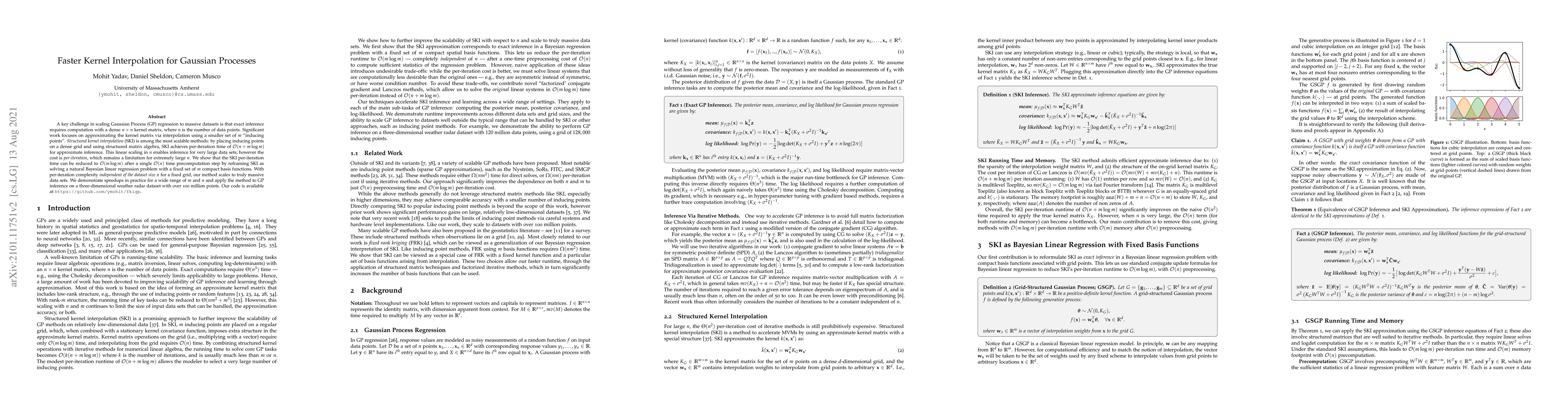 This paper proposes a method to reduce the per-iteration time of structured kernel interpolation (SKI) for Gaussian Processes, achieving O(m log m) complexity after an initial O(n) precomputation step. This allows scalable inference on massive datasets, demonstrated by significant speedups on a large weather radar dataset.