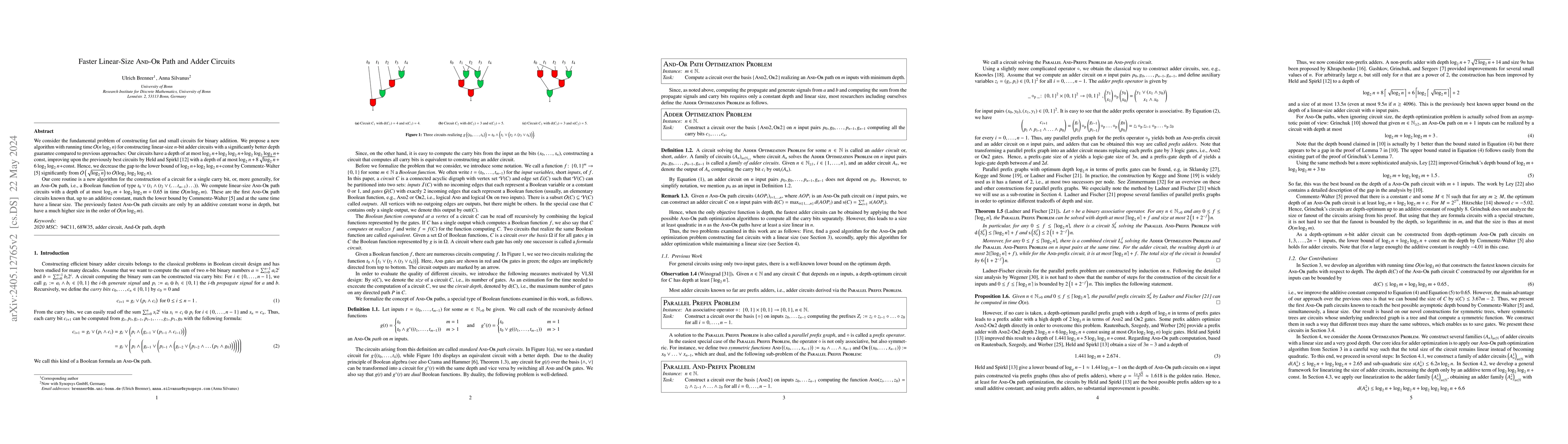 This paper presents a novel algorithm for constructing linear-size $n$-bit adder circuits with significantly reduced depth, achieving a depth of $\log_2 n + \log_2 \log_2 n + \log_2 \log_2 \log_2 n + \text{const}$ and running in $\mathcal O(n \log_2 n)$ time, thus improving upon previous depth guarantees. The method also extends to And-Or path circuits with optimal depth and linear size, achieving a depth of $\log_2 m + \log_2 \log_2 m + 0.65$ in $\mathcal O(m \log_2 m)$ time.